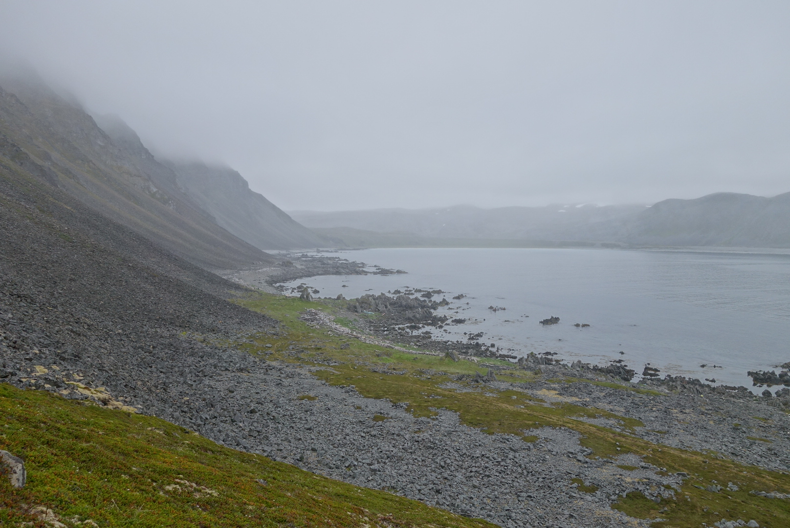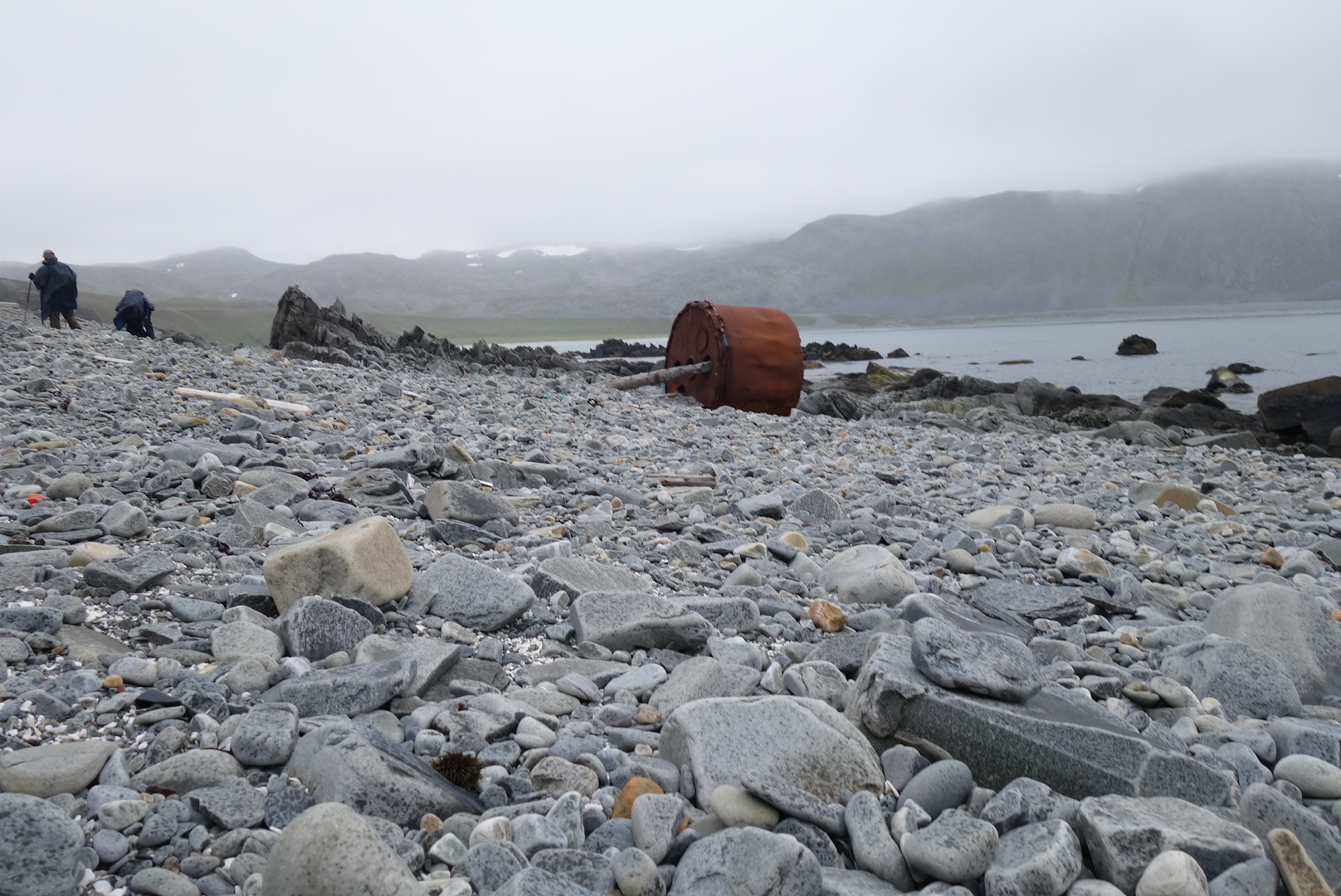 Nach einem steilen Abstieg über ein großes Steinfeld(was auch sonnst) erreichten wir den sehr sehr grobkörnigen „Strand“.