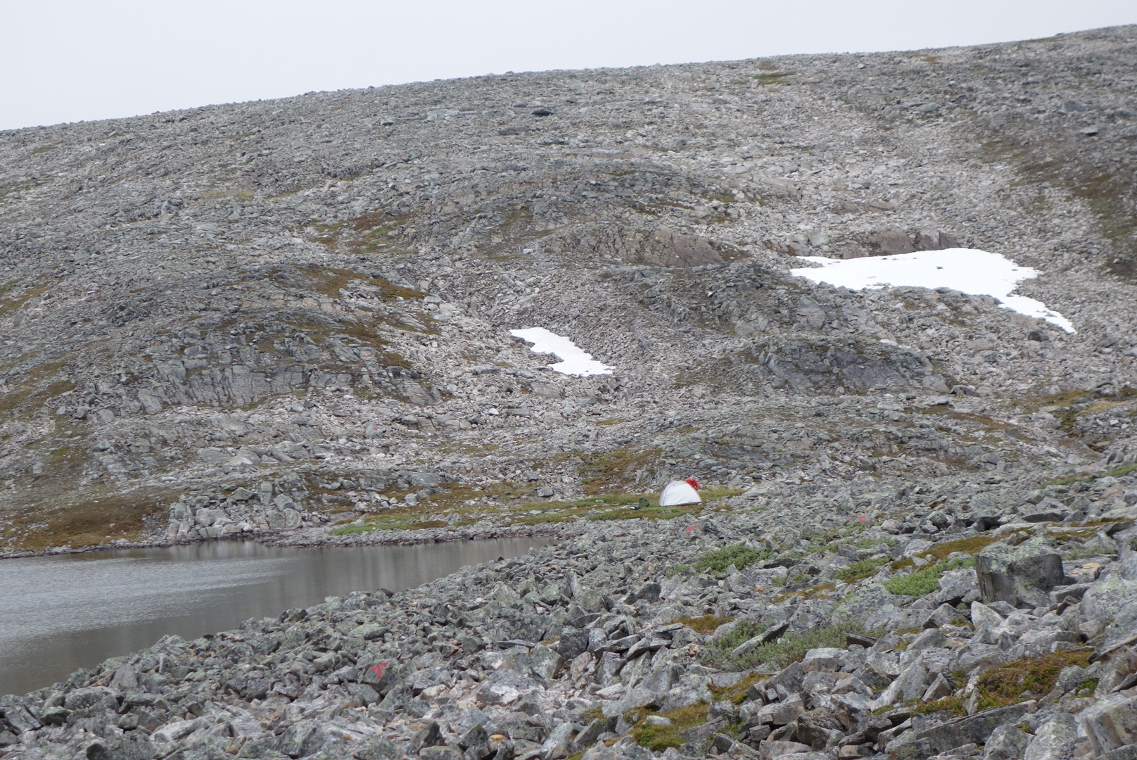 Nach einem kurzen Plausch stellte sich heraus, daß er aus Dänemark stammt und ob wohl er schon oft und viel in Norwegen gewandert ist er sich hier eingestehen musste, das er das nicht mehr schafft und seine Tour abbricht.
