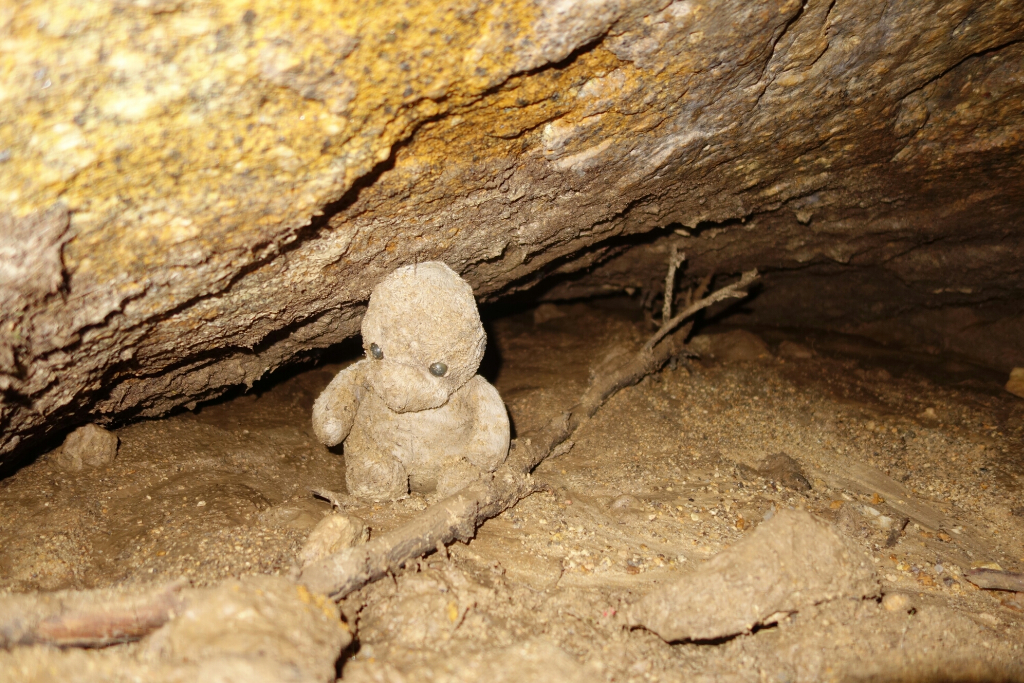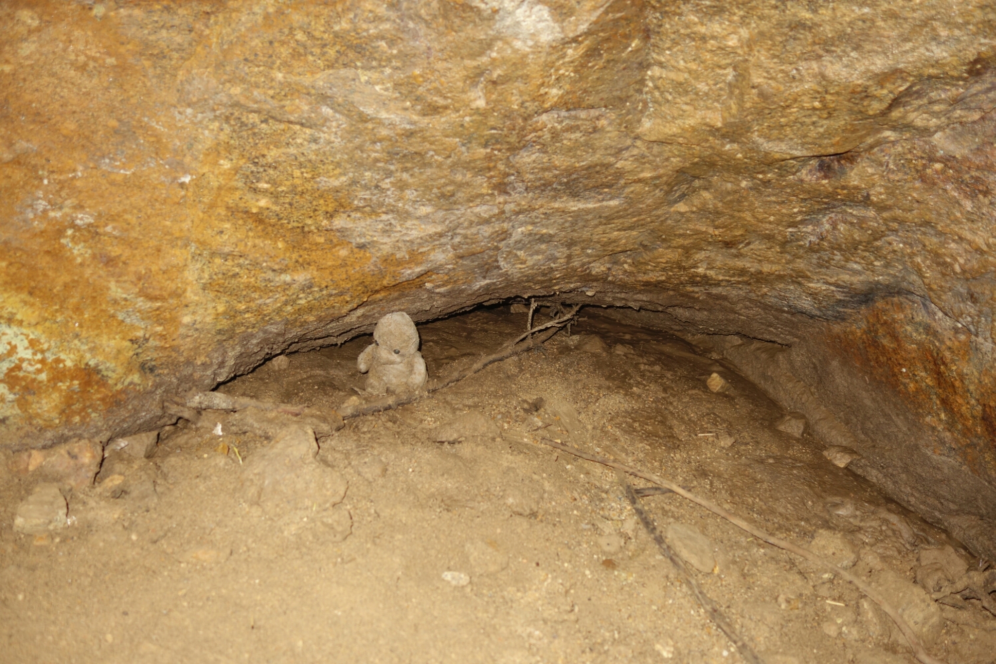 Das erste was ich sehe als ich zu den Felsen gehe ist eine Höhle.