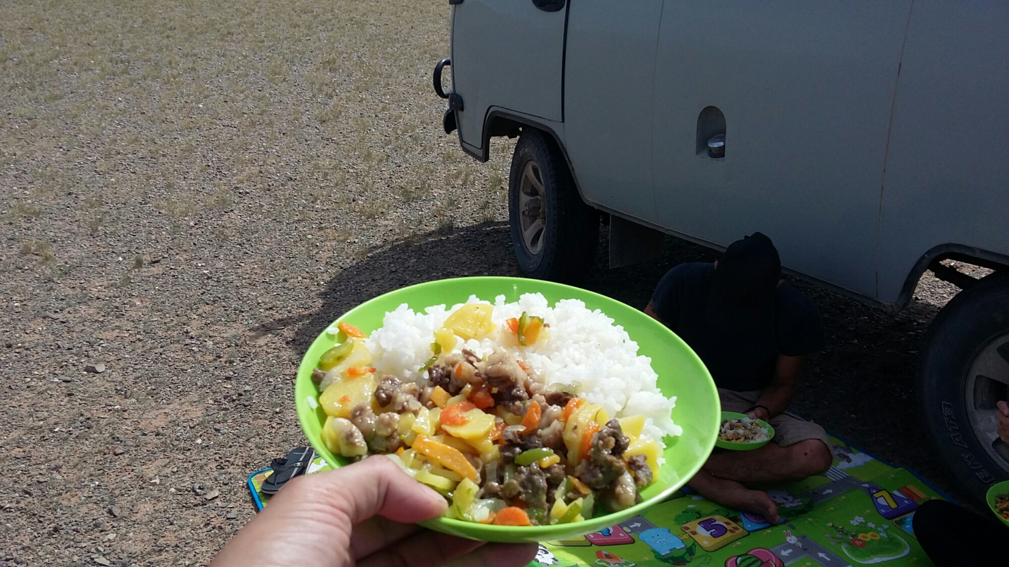 Er nennt es mongolisches Barbecue und verspricht uns das wir wenn wir etwas Geld dazu geben dieser die nächsten Tage auch mal zu machen.