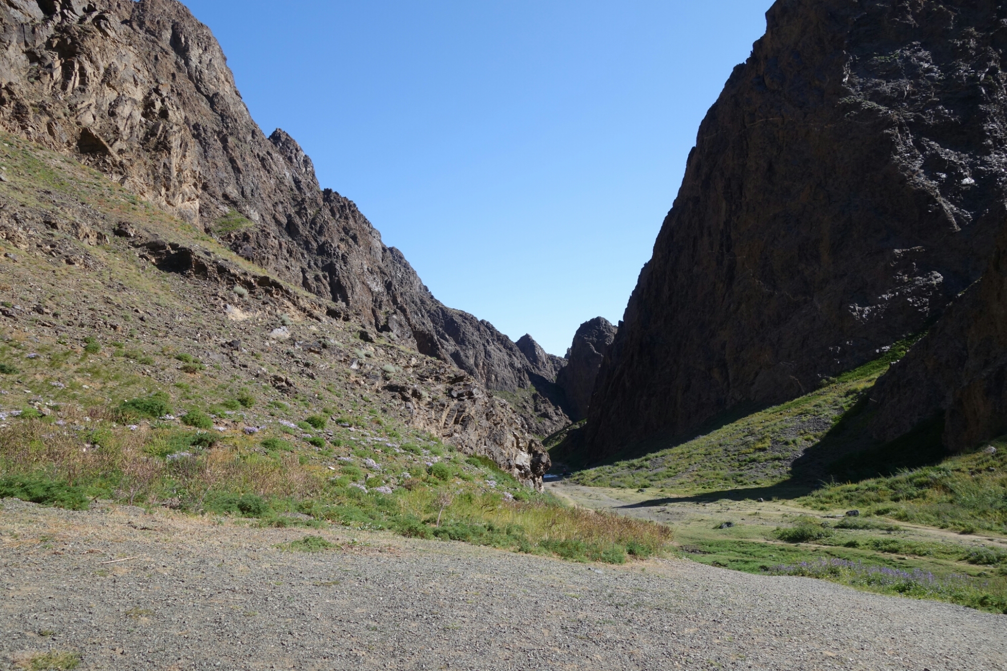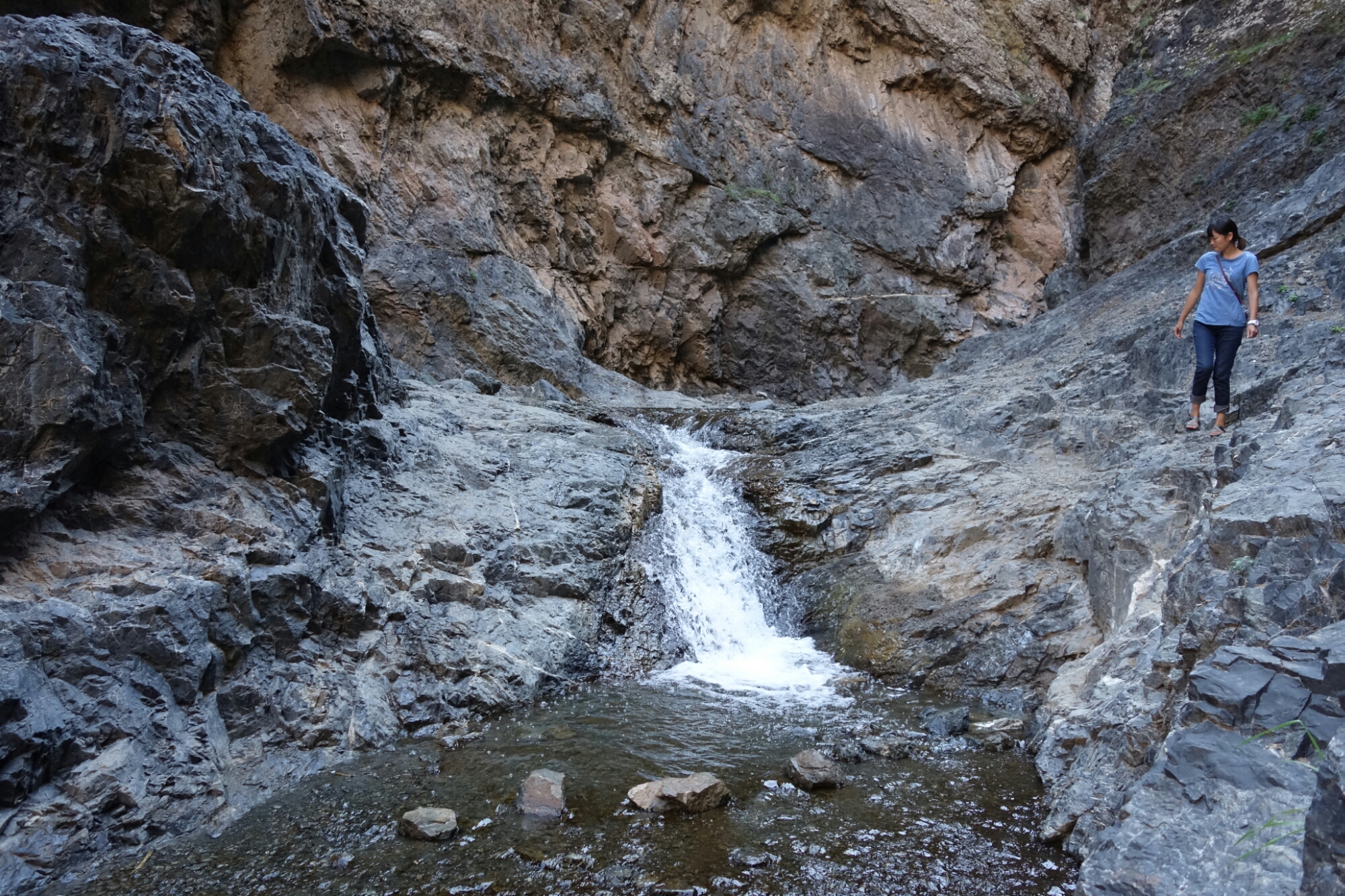 Um doch ein wenig Ruhe zu haben überholen wir die Kids und folgen weiter einem kleinen Bächlein welches sich seinen Weg zwischen den gigantischen Felsen bahnt.