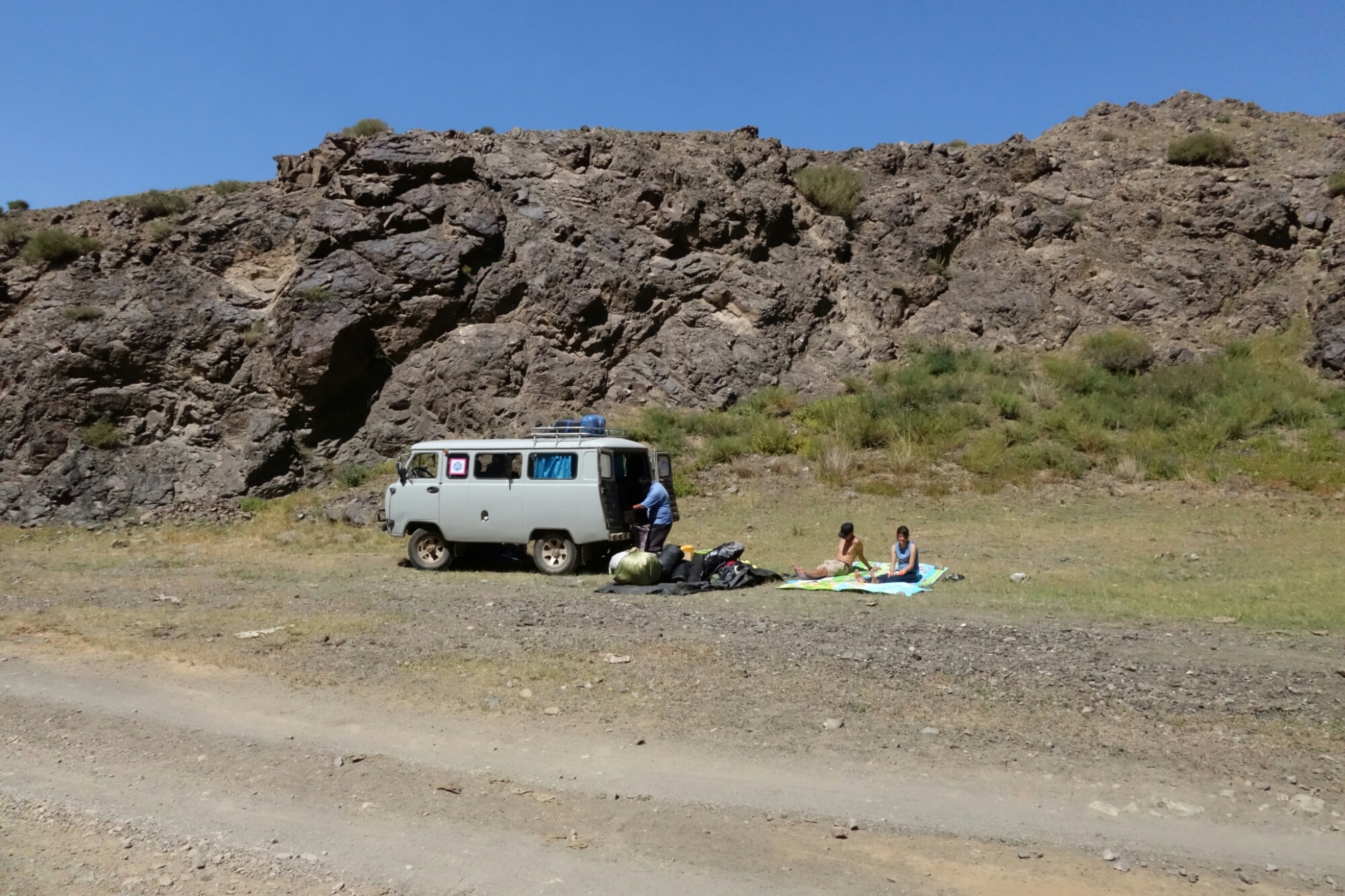Lange arbeitet sich unser UAZ durch felsige Schluchten und auch unsere Mittagspause legen wir hier ein.