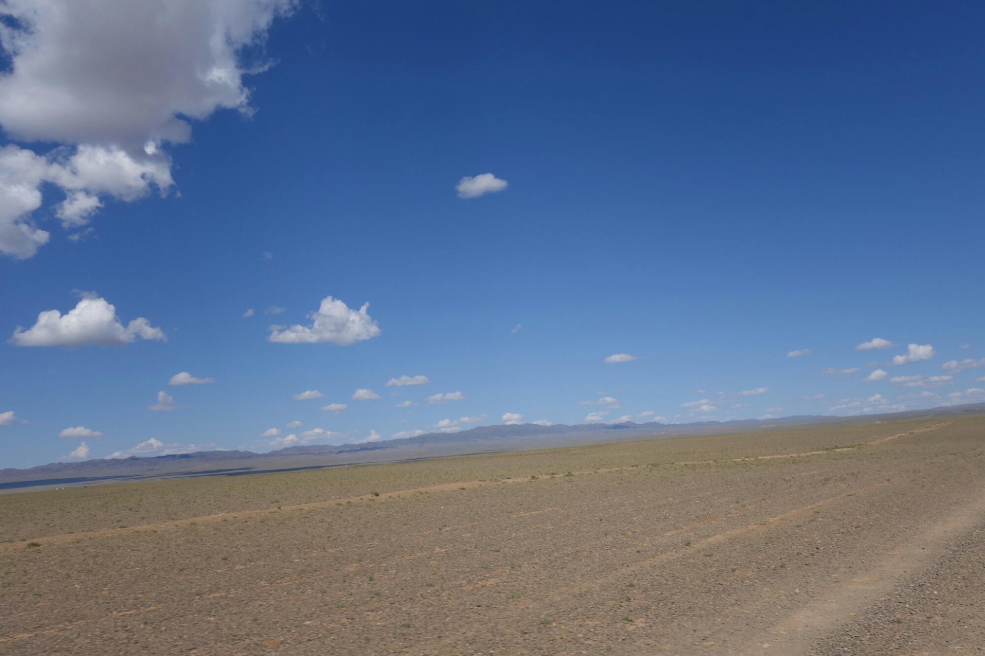 Stunden lang fahren wir weiter durch die Steppe bis irgendwann Sand zu sehen ist.