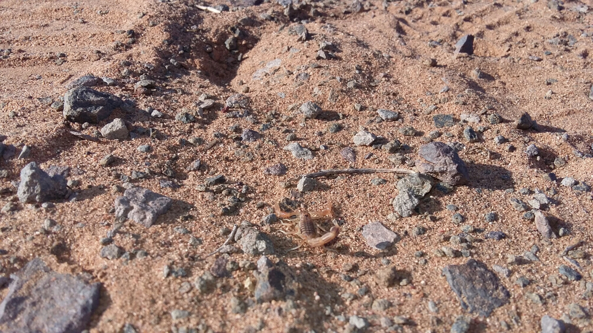 Das etwas ist ein kleiner Skorpion, der etwa 5 Meter neben der Stelle an der wir geschlafen haben sitzt.