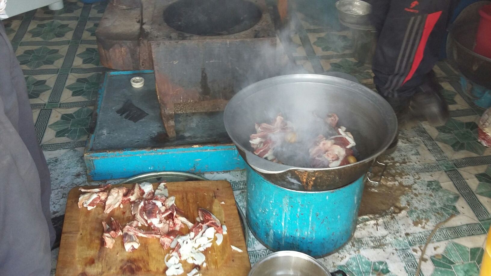 Nach dem er uns ein wenig Geld abgeknöpft hat geht er los und besorgt ein riesiges 4 Kilo schweres Stück Schaf.