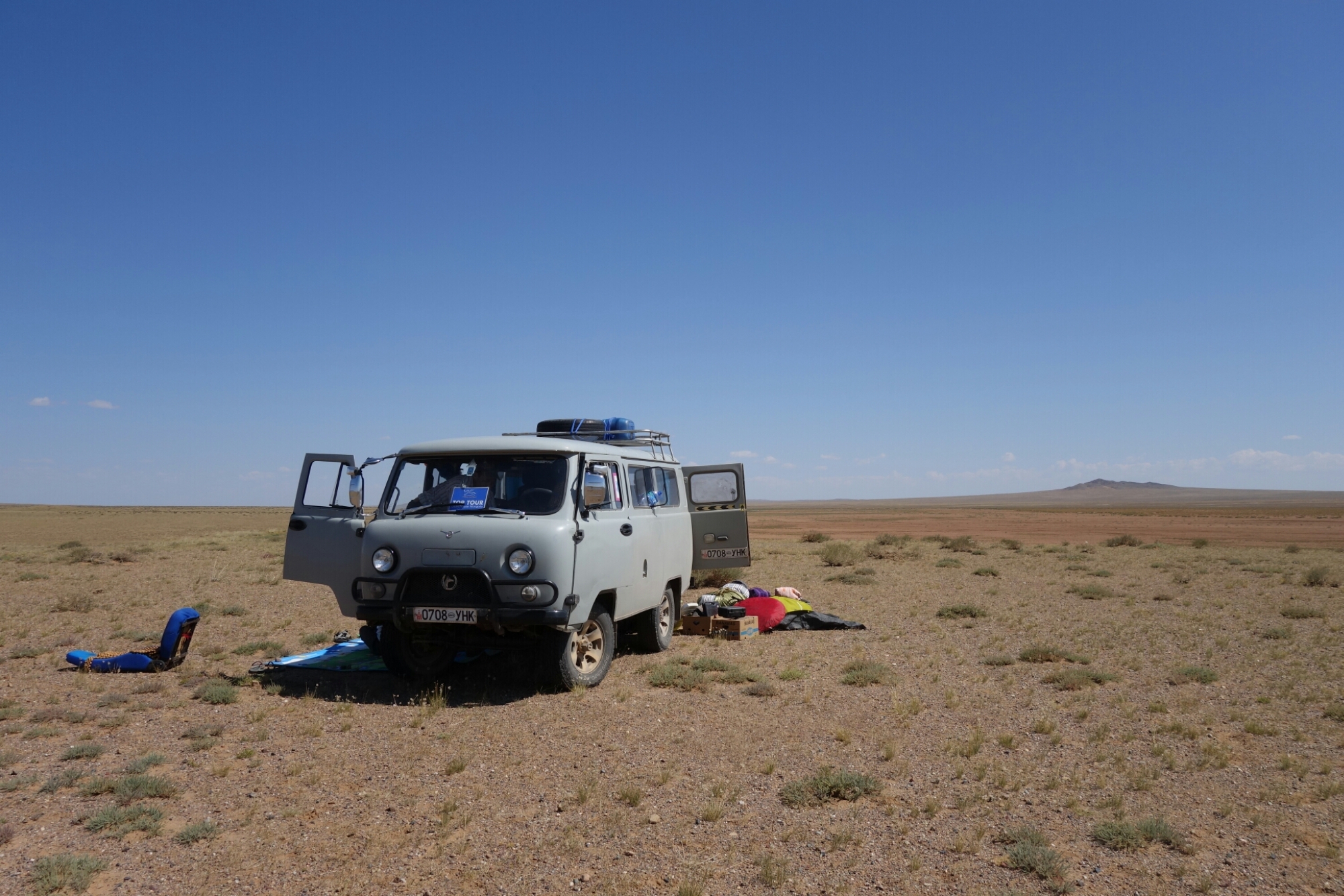 Wir verlassen das Dorf und nach dem wir mal wieder ein paar Stunden auf der staubigen Piste unterwegs waren steuert Tugsuu den Wagen auf zwei Jurten zu.