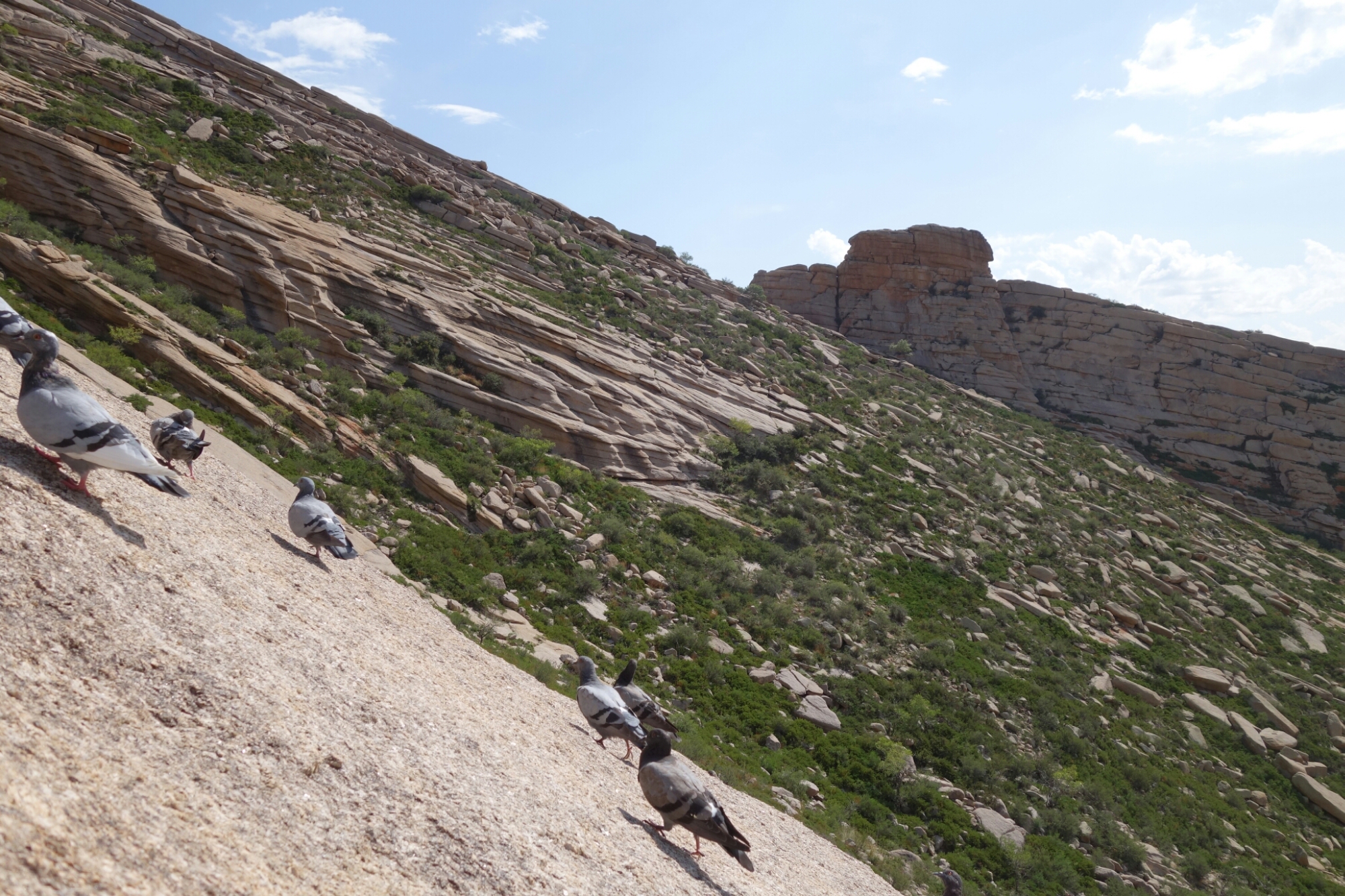 Wärend ich hier oben sitze, die Ruhe genieße und ein paar Fotos mache werde ich immer mehr von den hier lebenden Tauben belästigt.