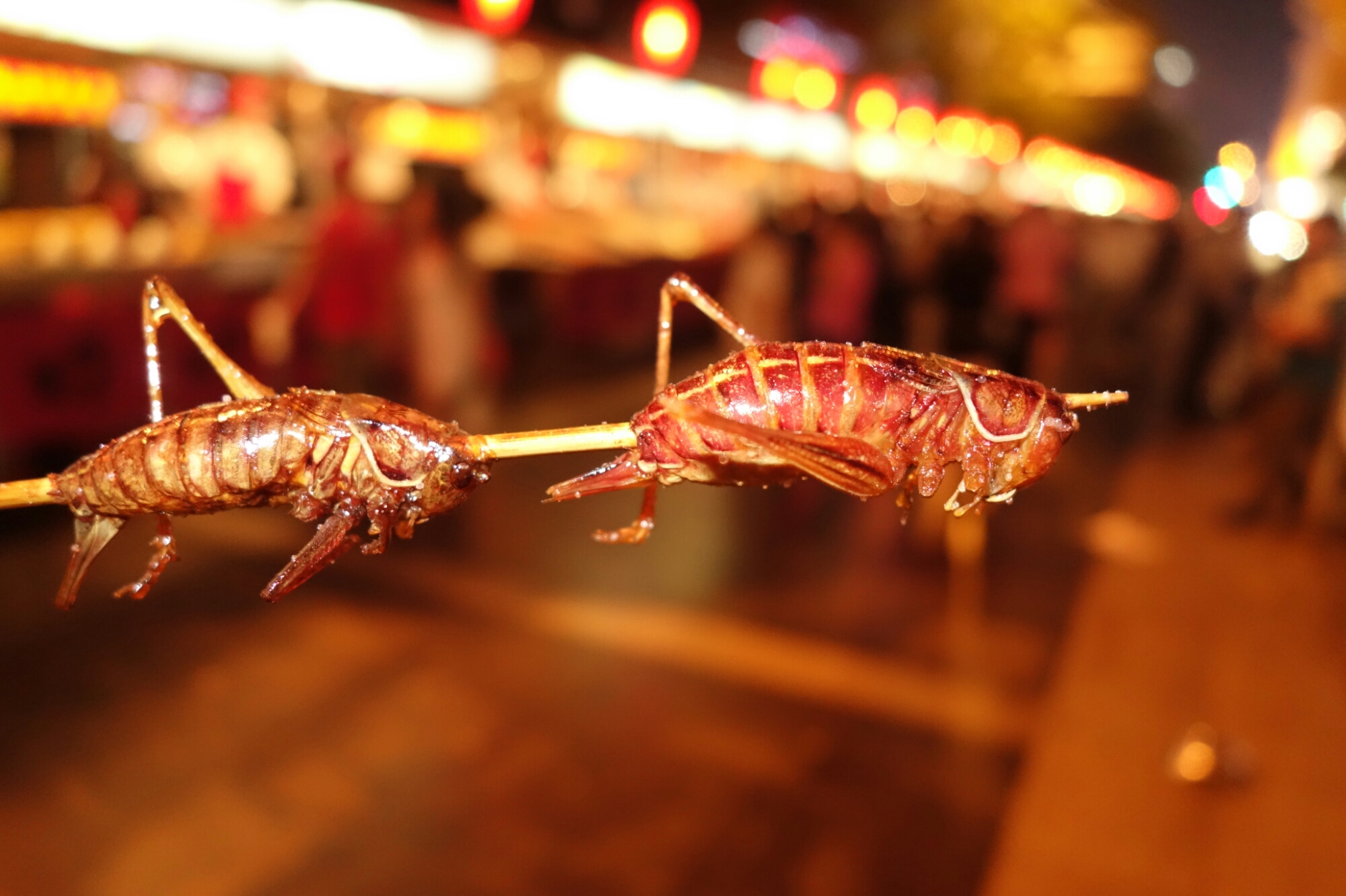 Heuschrecken schmecken wie Chips und ich knusper die 2 Tierchen ratzfatz weg.