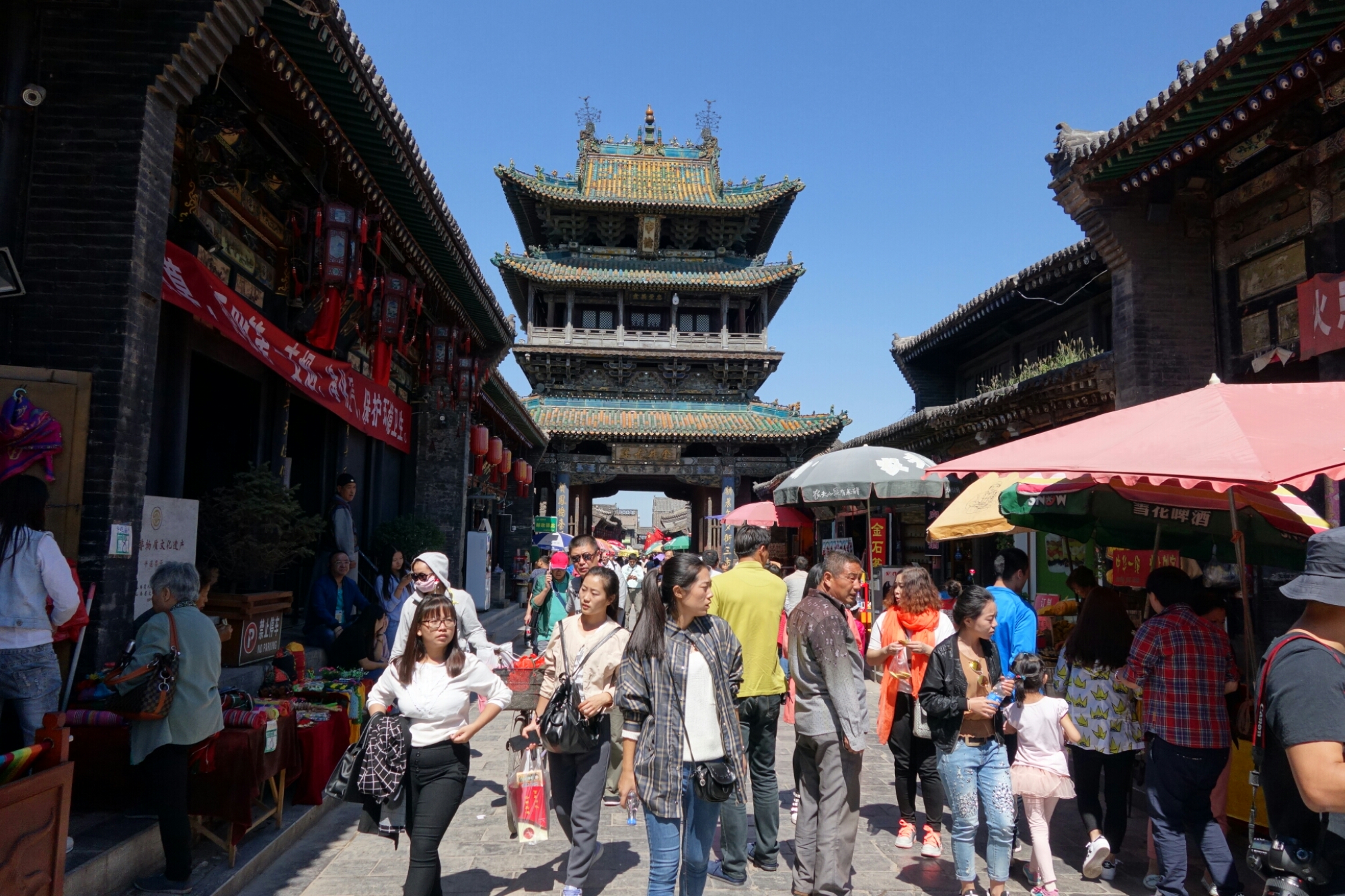 Die Altstadt von Pingyao ist von einer riesigen Mauer umgeben für Autos gesperrt und vorallem für chinesische Touristen ein beliebtes Ausflugsziel.