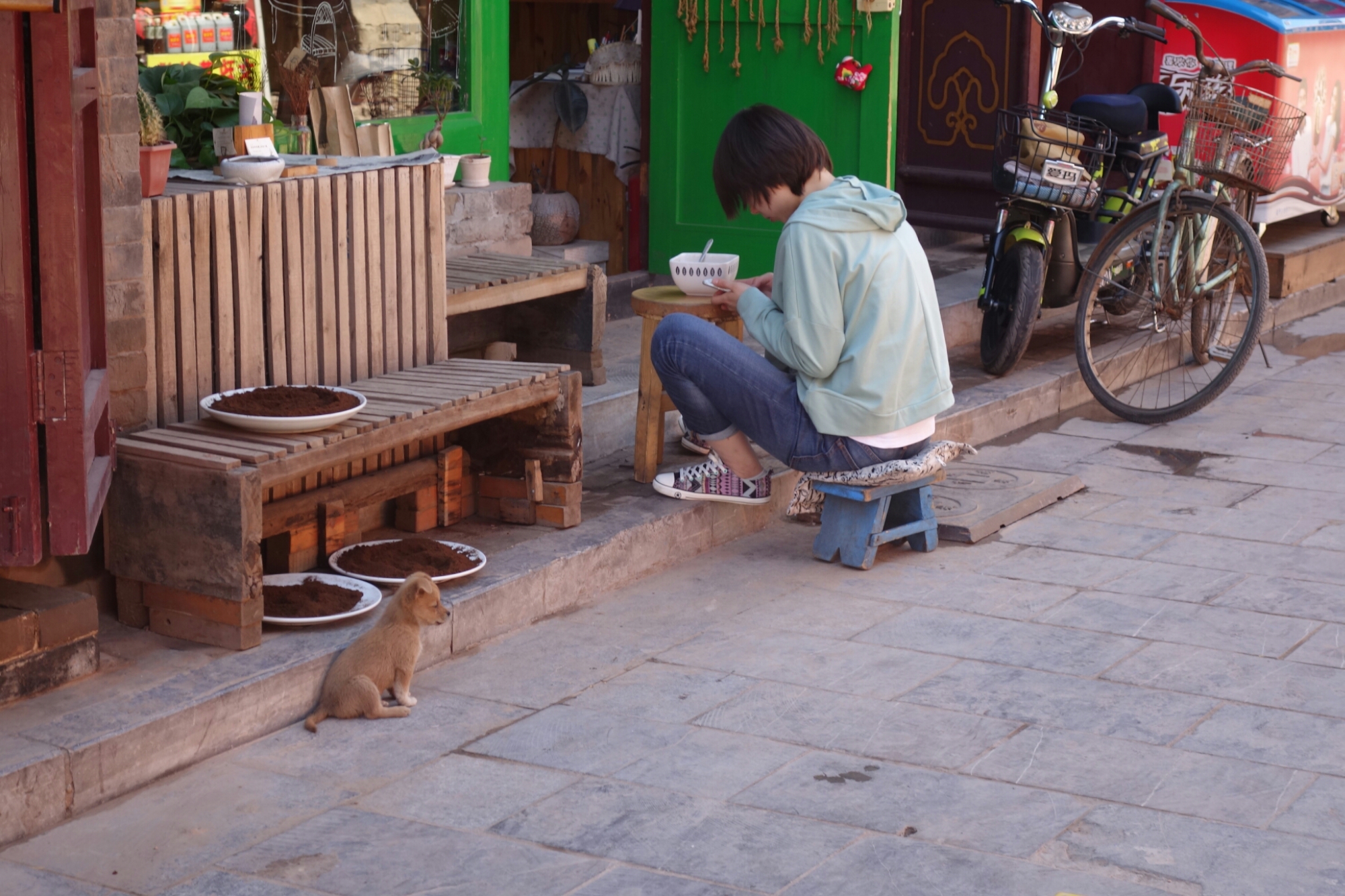 Nach etwa 15 Minuten, ich hab schon die Stadtmauer erreicht, hält eine Chinesin mit ihrem Roller neben mir an fängt an zu erzählen und drückt mit eine Visitenkarte in die Hand.