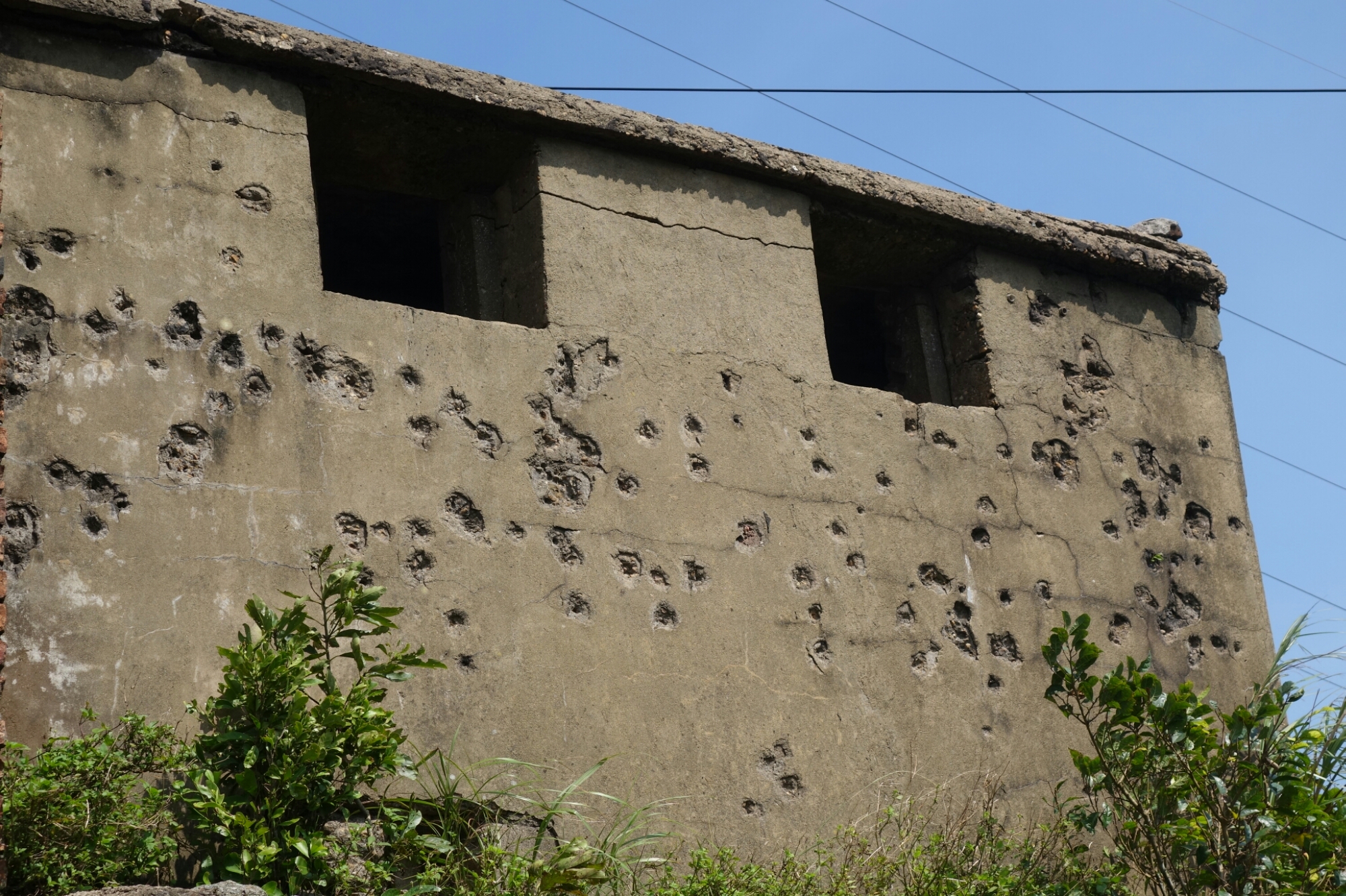 Wir fahren einen Berg rauf und an einer Stelle ziemlich weit oben in der Nähe alter Bunkeranlagen (an der man Spuren längst vergangenen Zeit erkennen kann) machen wir halt.
