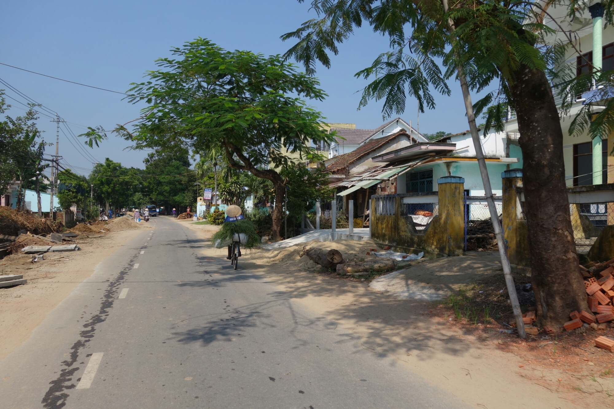 Mittlerweile sind wir nicht mehr auf der gut ausgebauten Straße unterwegs sondern auf einem relativ schmalen Weg der immer gerade durch Reisfelder und ein paar urige Dörfer führt.