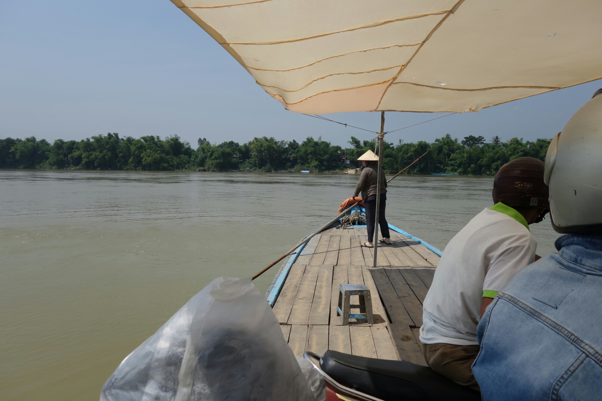 Binh erklärt mir, das wir auf die andere Seite müssen und hier die Fähre nehmen.