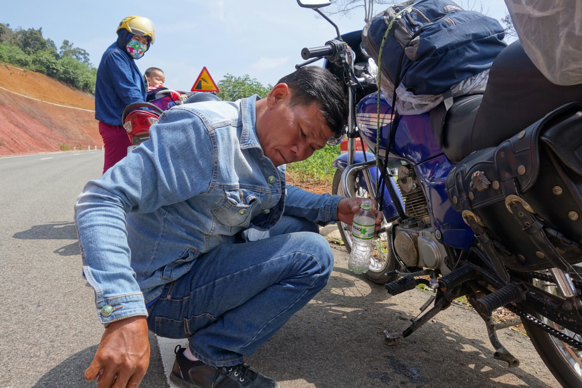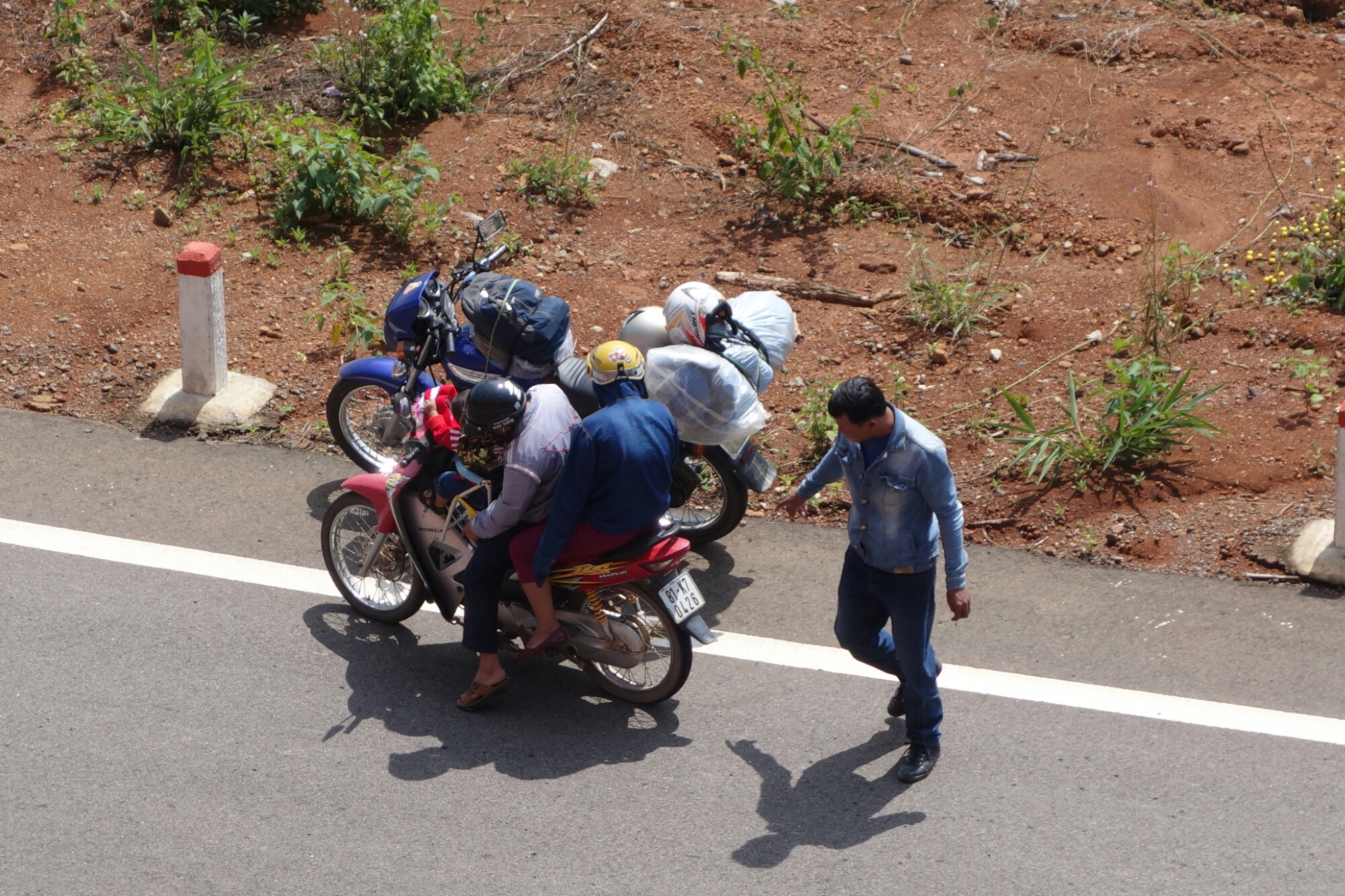 Jetzt ist auch klar, was die Rollerfahrer von uns wollen, sie sind mit noch jemanden unterwegs und dieser Jemand hat kein Benzin mehr.