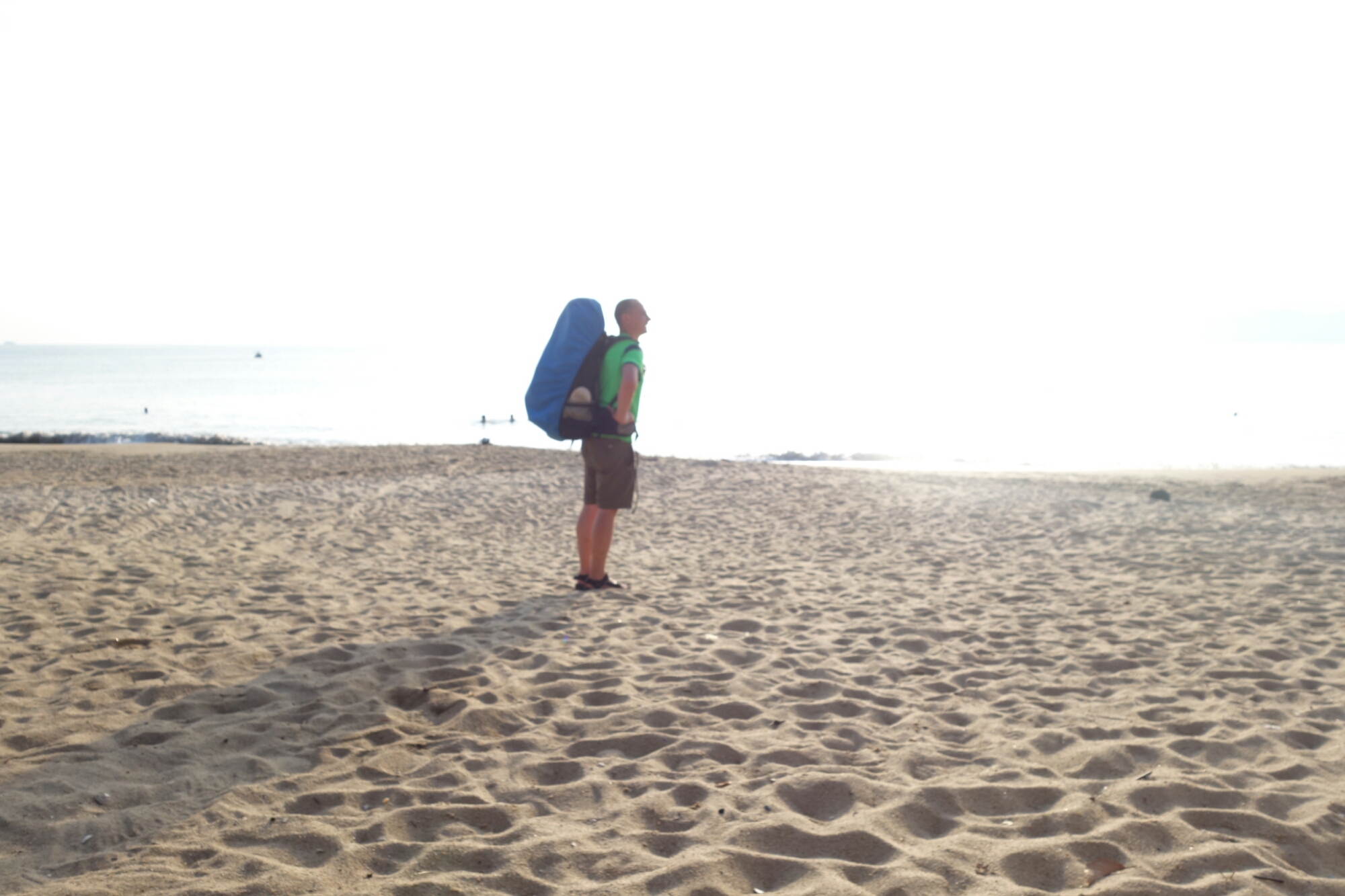 Die Sonne ist gerade auf gegangen und trotz des schweren Rucksacks genieße ich jede Minute meiner kleinen Wanderung und um die Sache perfekt zu machen ziehe ich meine Sandalen aus um die letzten Kilometer barfuß am Strand zuruckzulegen.