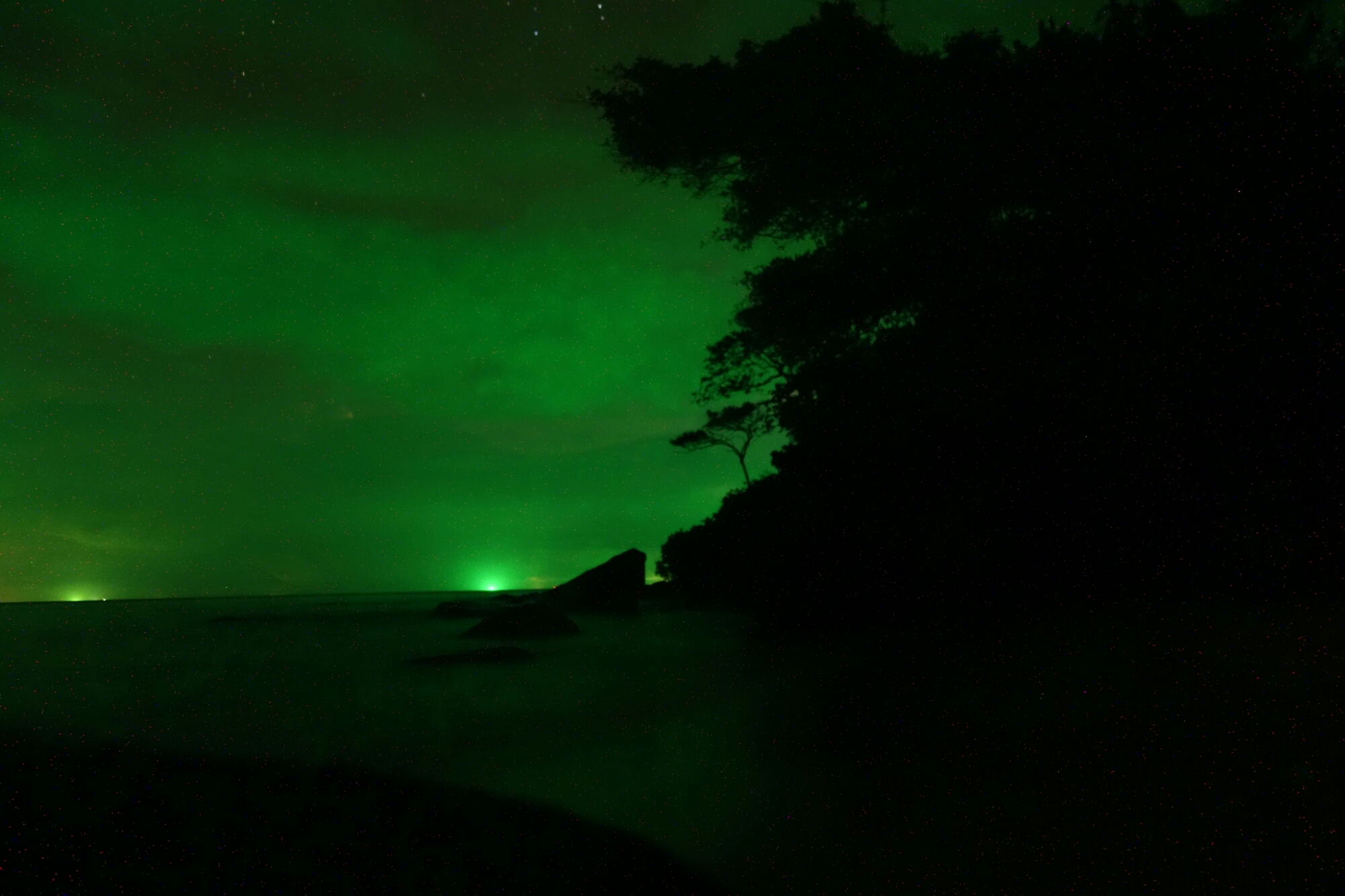 Gegen 23 Uhr versuche ich auch mein Glück und gehe ins Wasser, dummerweise sehr ich aber nix.