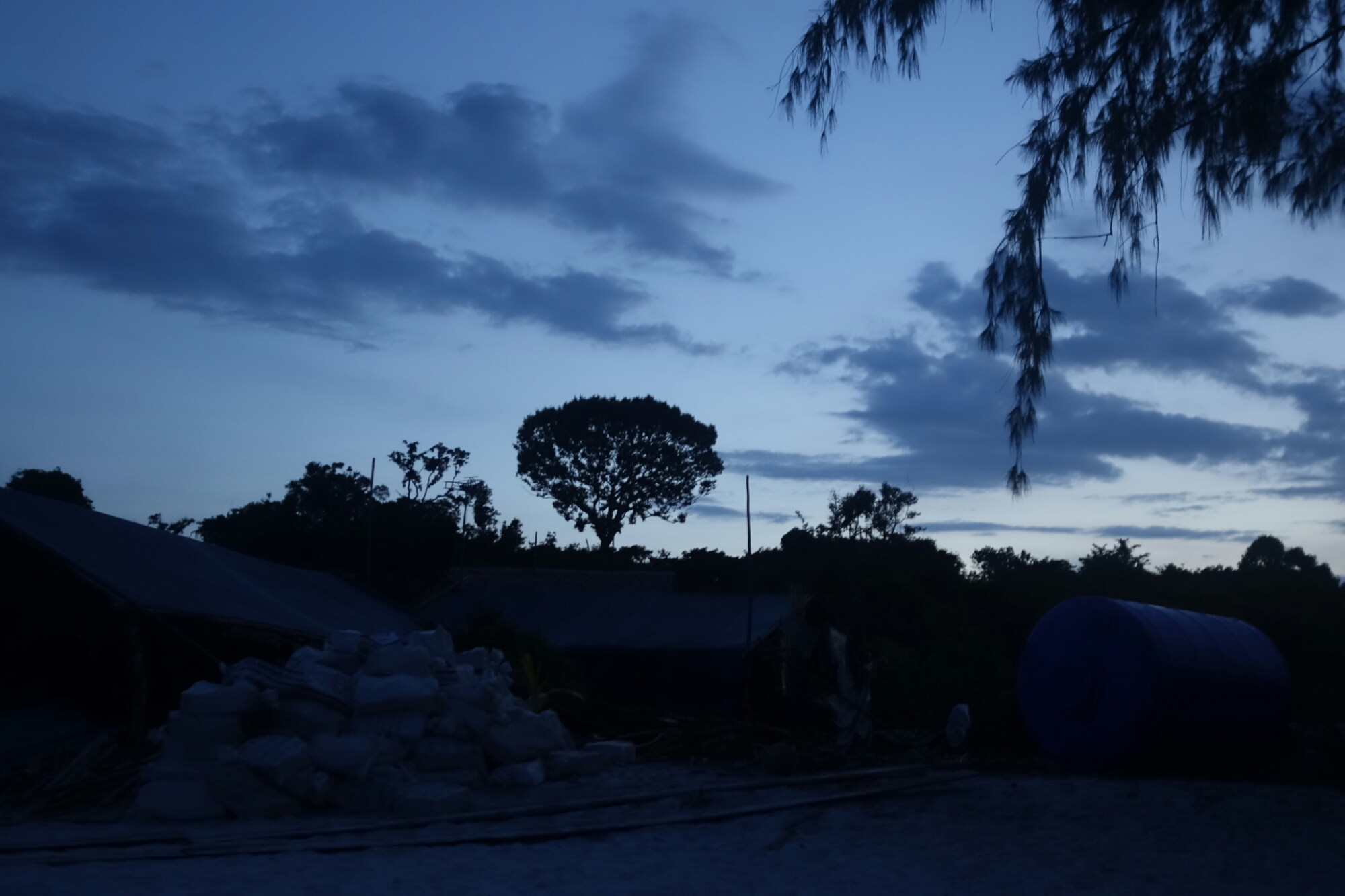 Er schaltet alle Lichter im Resort aus und zusammen gehen wir ins Wasser.