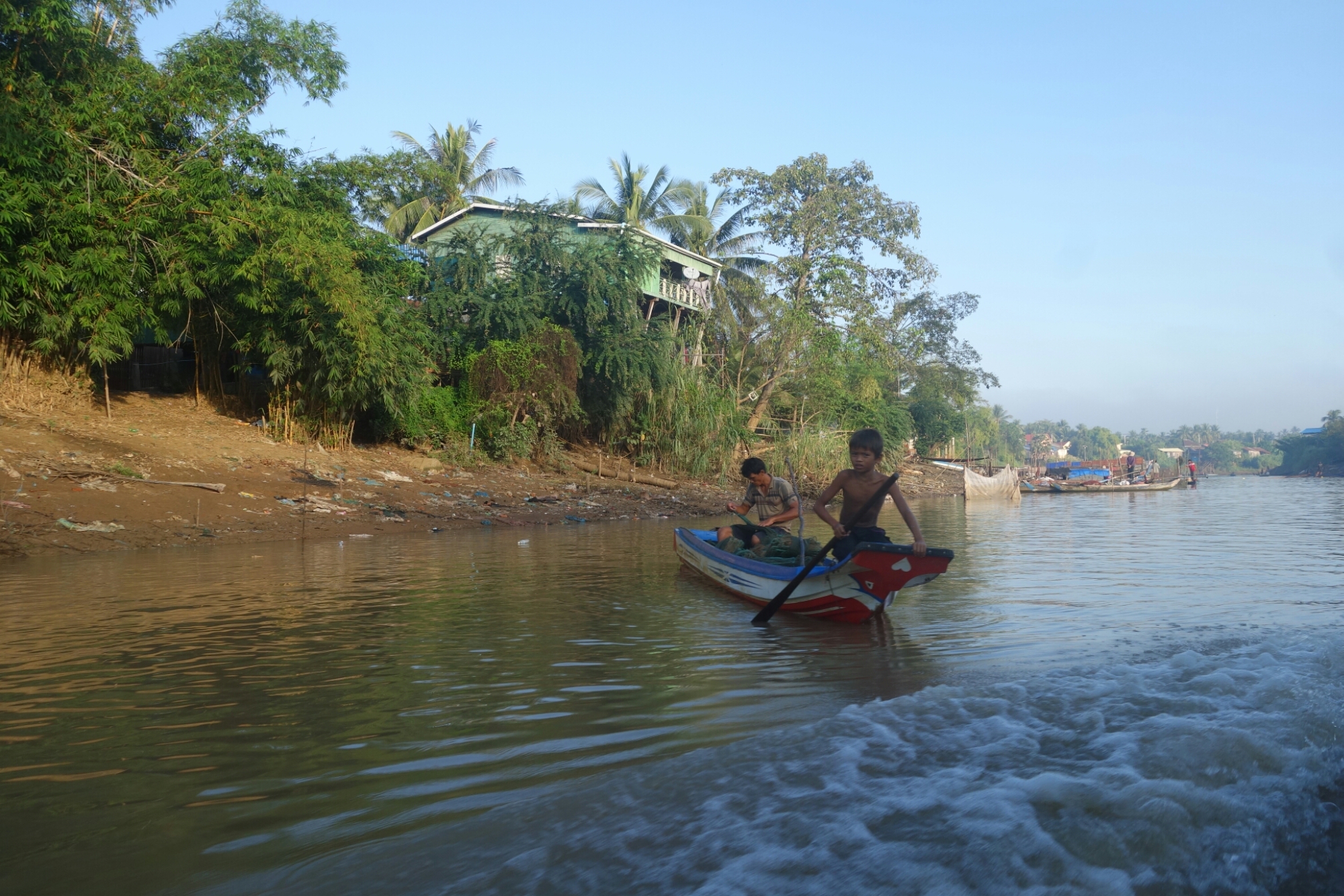 So stehe ich also um halb Sechs mit gepackten Sachen und ohne Kaffee im Bauch vor dem Ganesha Guesthouse und warte auf das Tuktuk, das mich zum Fluss bringen soll.