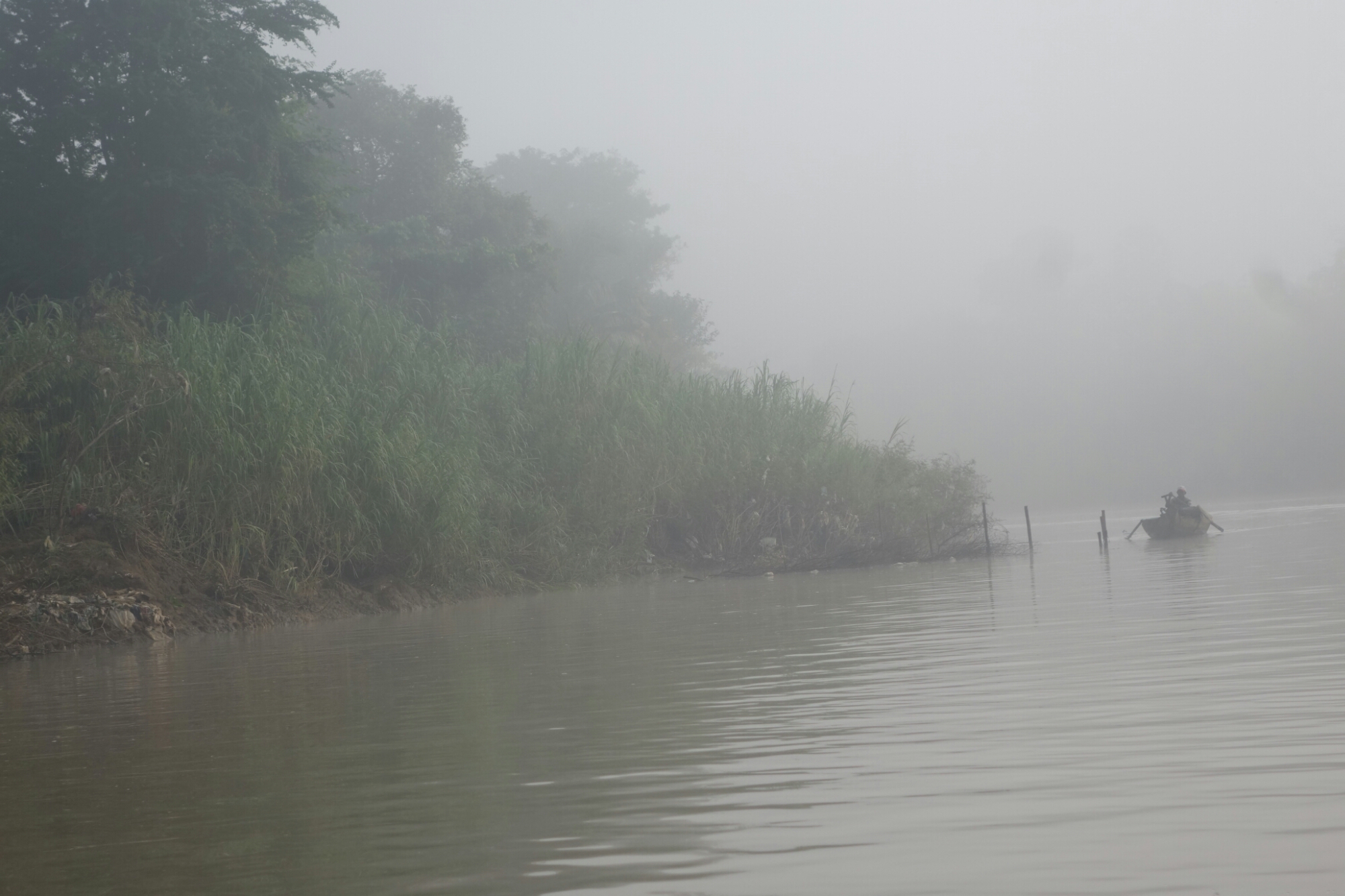 Nebel hängt noch über dem Fluss und man kann schon die ersten Fischer dabei beobachten wie sie ihrer Arbeit nachgehen.