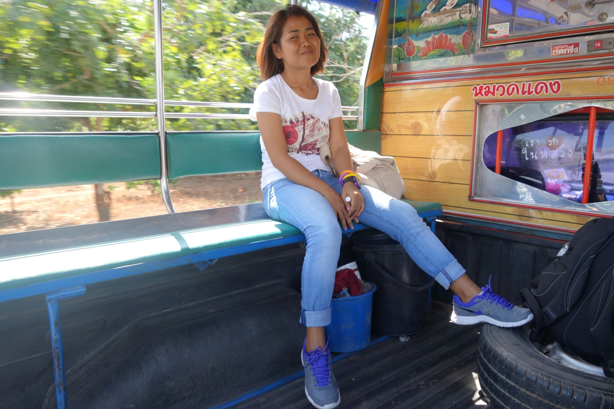 Auch spannend ist das Telefonat, welches eine ältere Thailänderin vor uns führt.