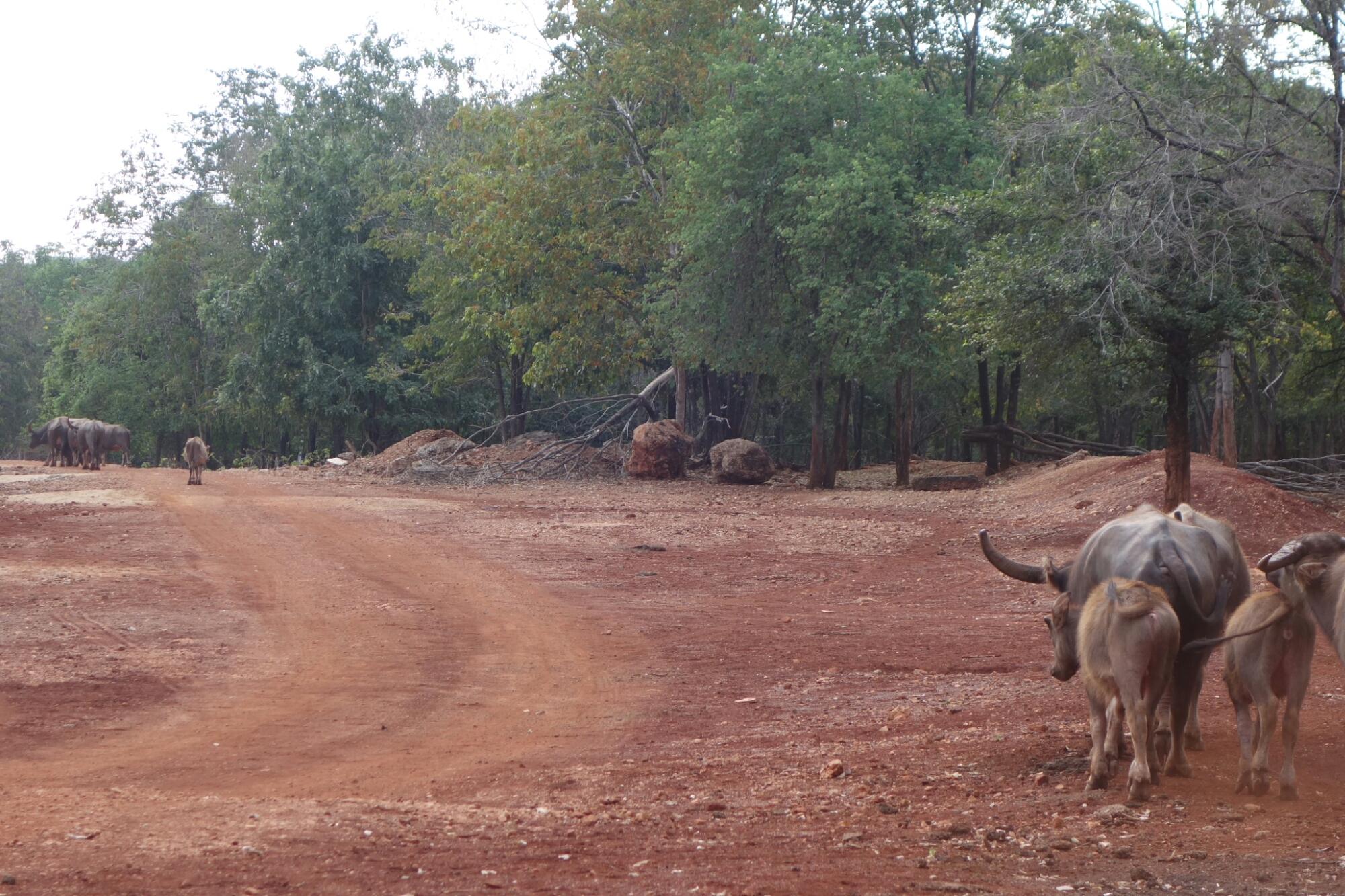 Das Gelände ist riesig und ständig begegnet man Pferde, Kühe und Wassrebuffel aber von Tigern ist nichts zu sehen.