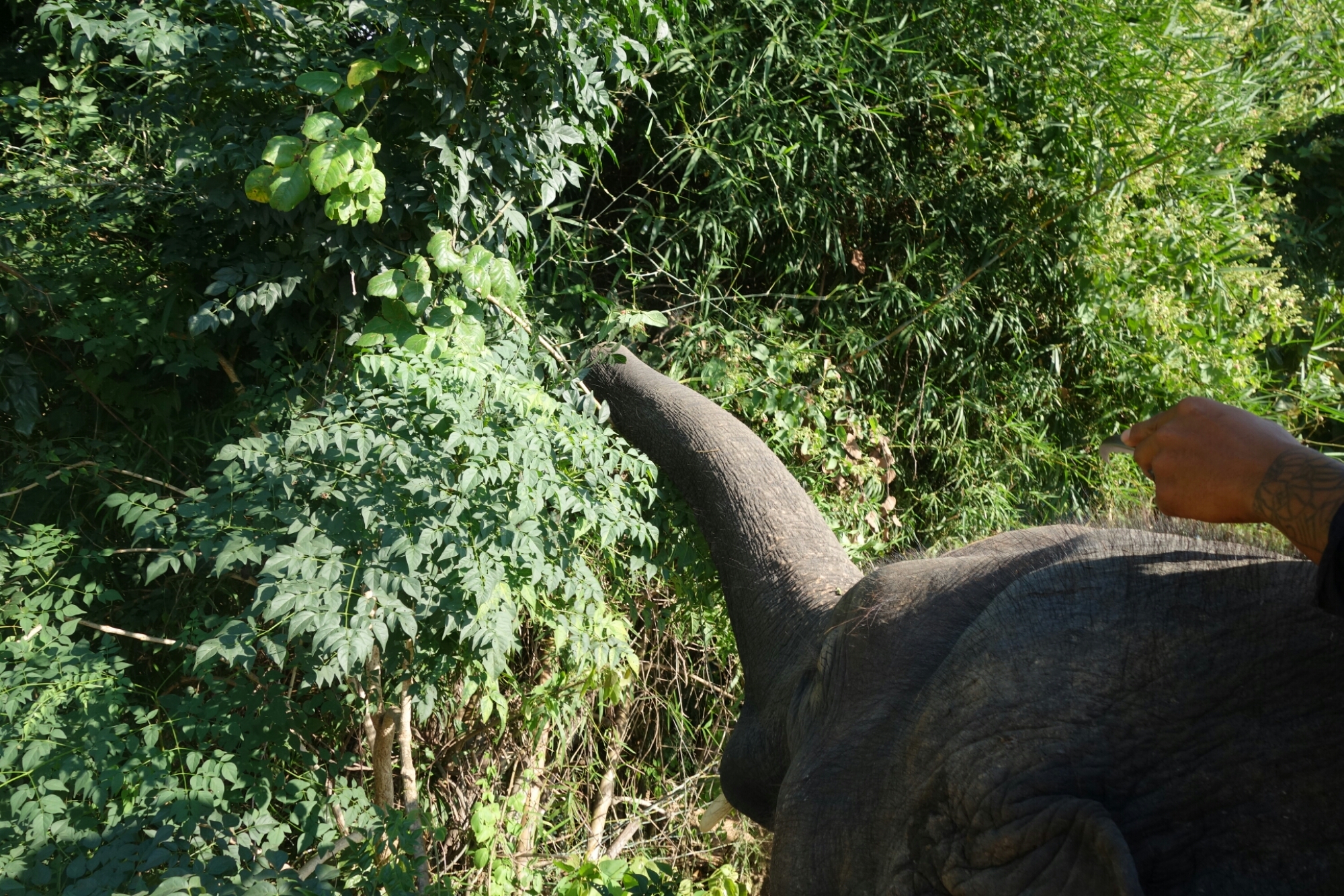 Wärend der graue Riese also gemütlich mit uns durch die Landschaft stapft unterhält sich der Elefantenführer (die korrekte Berufsbezeichnung ist übrigens Mahout) angeregt mit meiner Reiseleiterin.