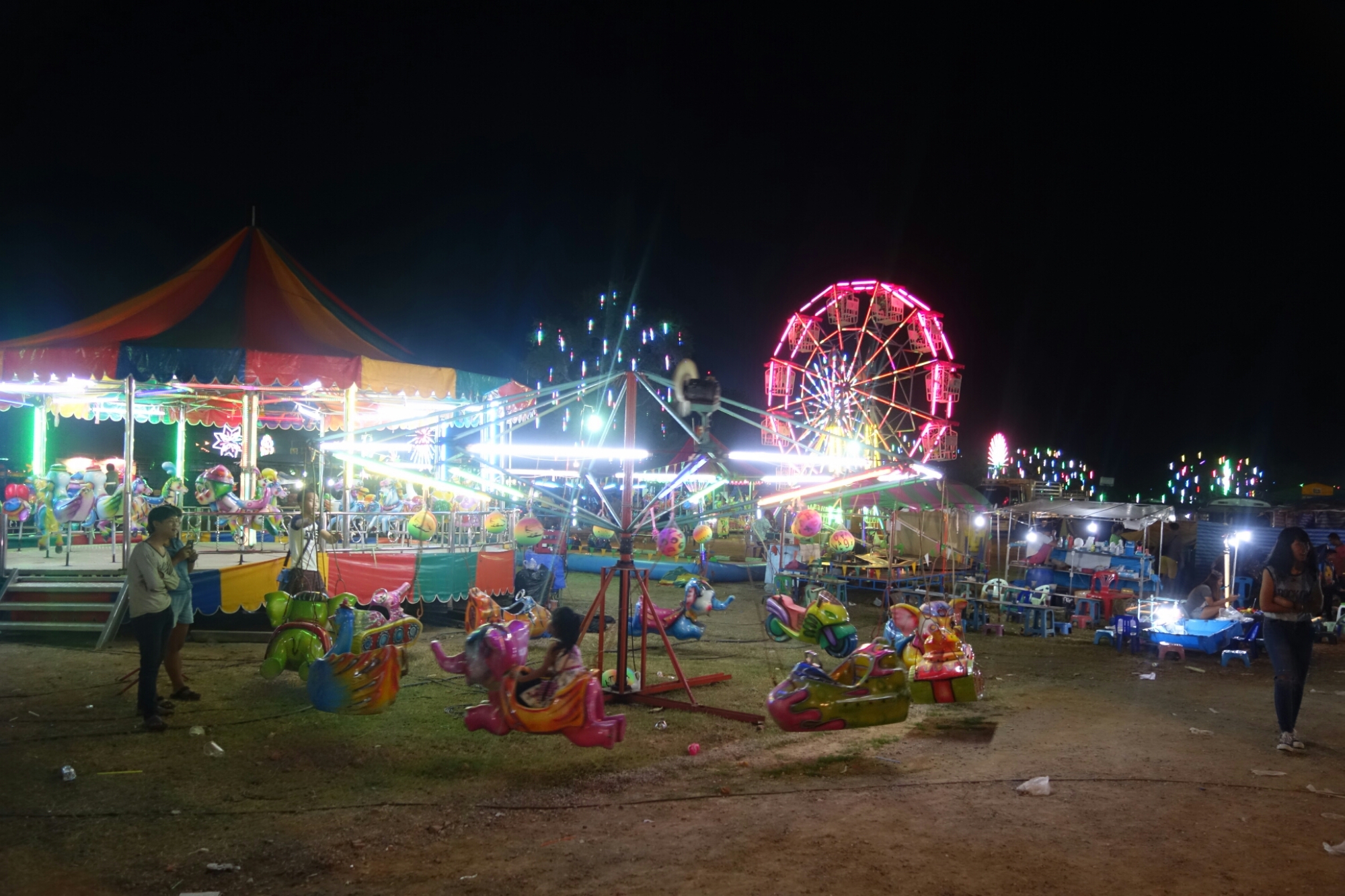 Die Stadt liegt an einem Fluss und hat eine Eisenbahnbrücke von der sicher schon jeder gehört hat, die „Brücke am Kwai“ und ausgerichtet heute ist hier ein großes Fest mit Feuerwerk und Show Programm.