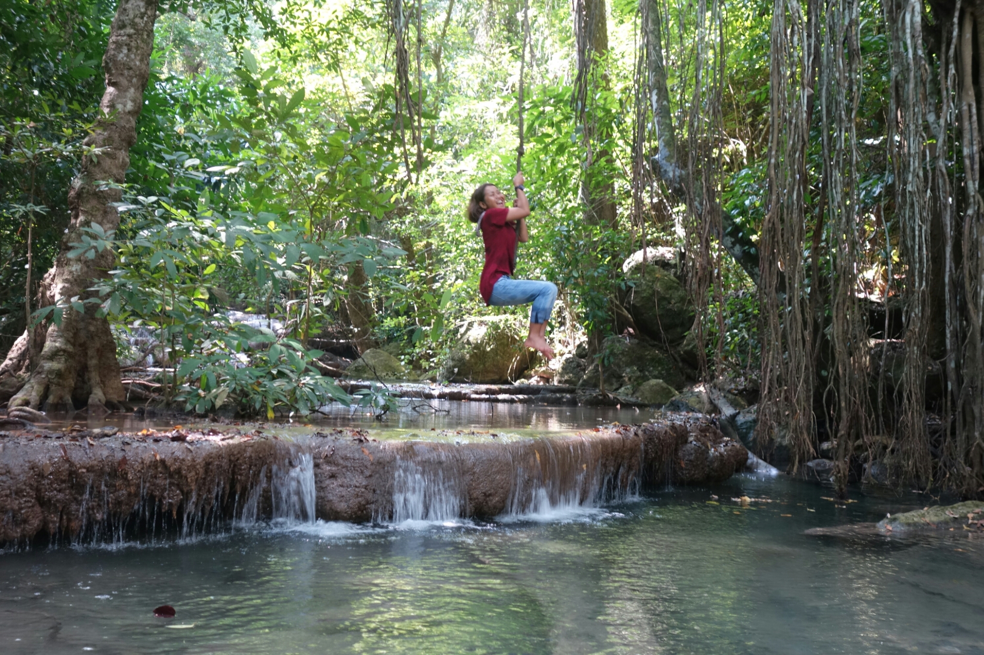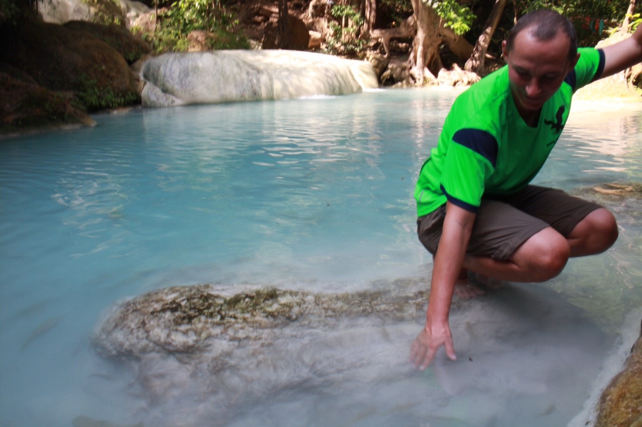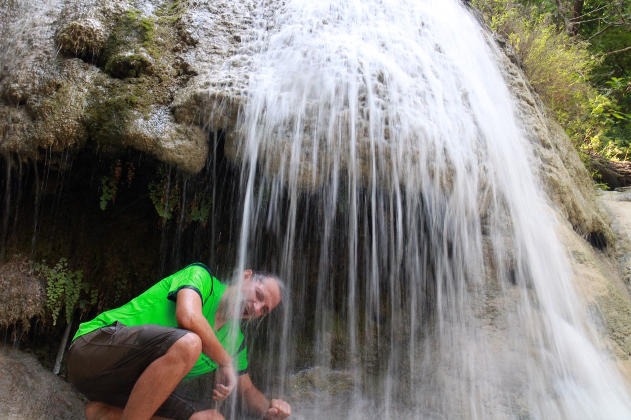 Nach nicht ganz einem Kilometer erreichen wir den ersten Level des Wasserfalls und ja, ich bin jetzt schon ziemlich beeindruckt, das Wasser ist blitzeblau und schreit mich förmlich an „Komm schwimmen! Es ist herrlich! Versprochen!“