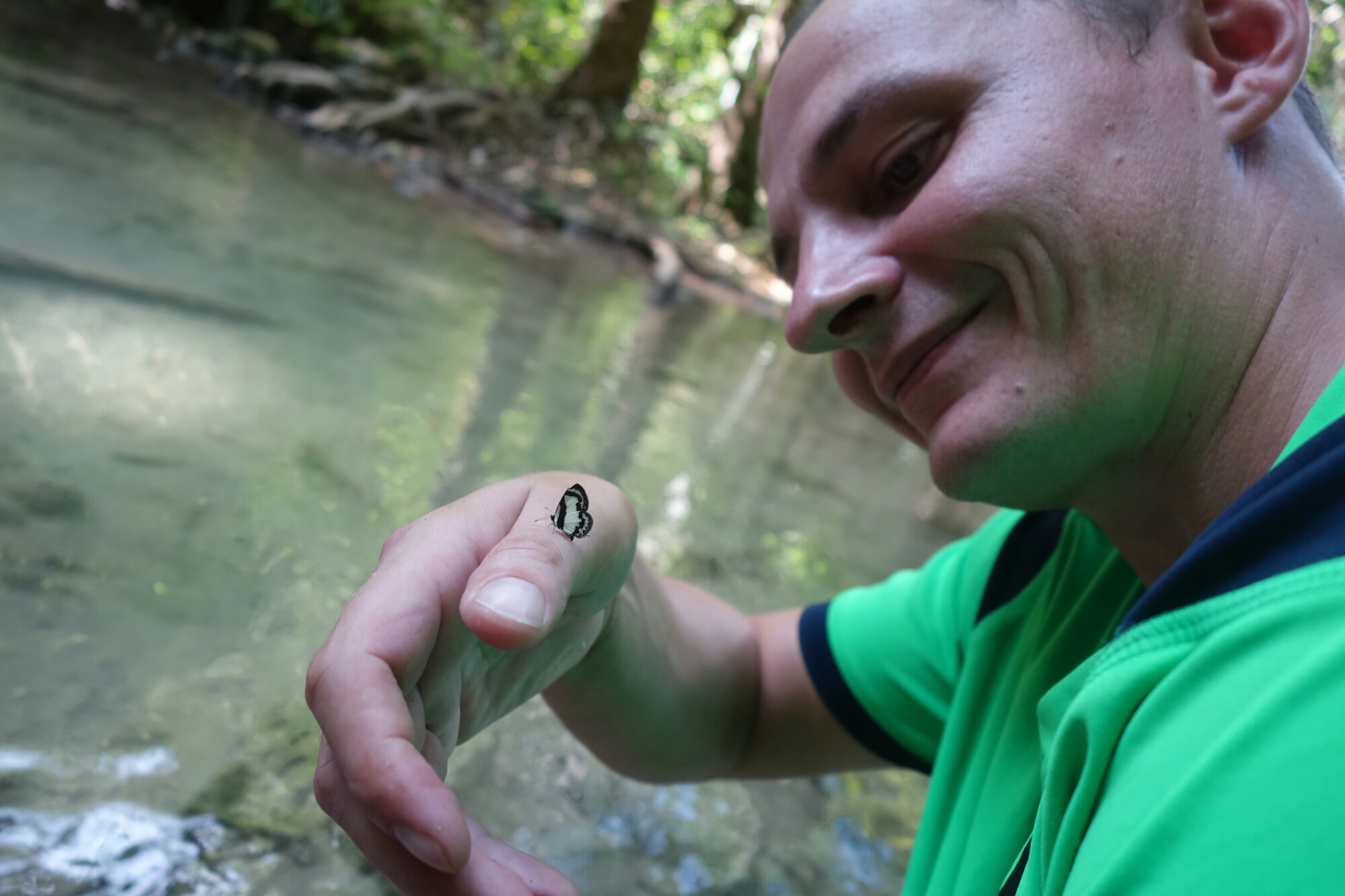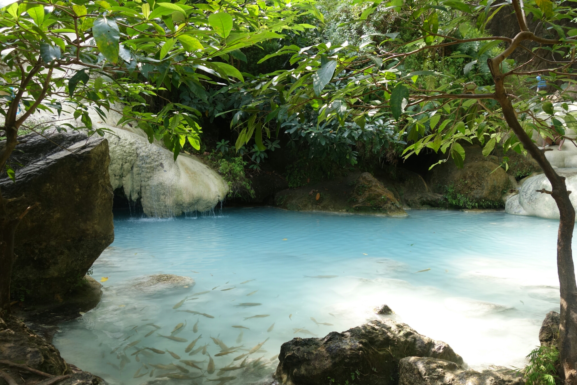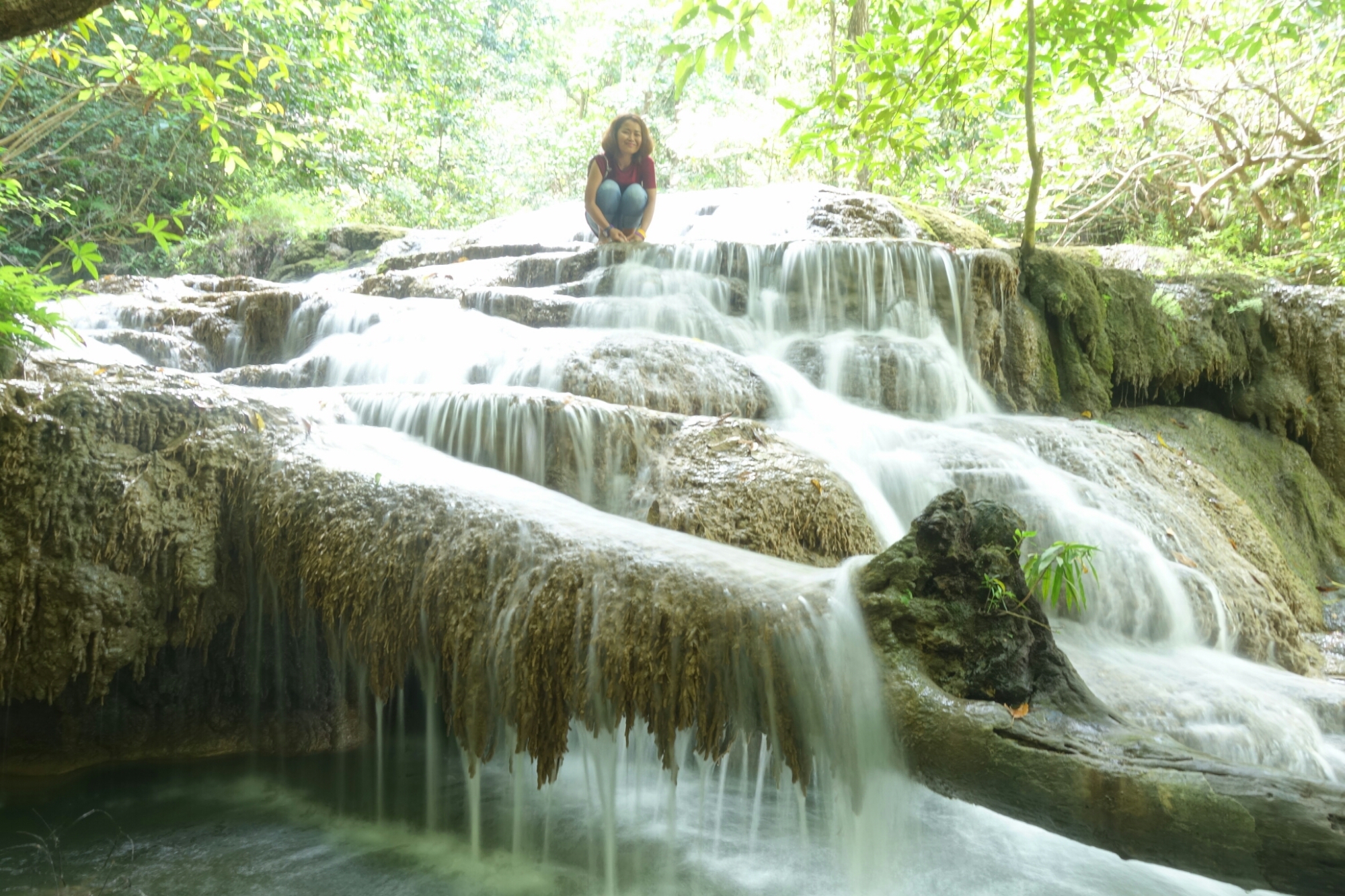 Nach nicht ganz einem Kilometer erreichen wir den ersten Level des Wasserfalls und ja, ich bin jetzt schon ziemlich beeindruckt, das Wasser ist blitzeblau und schreit mich förmlich an „Komm schwimmen! Es ist herrlich! Versprochen!“