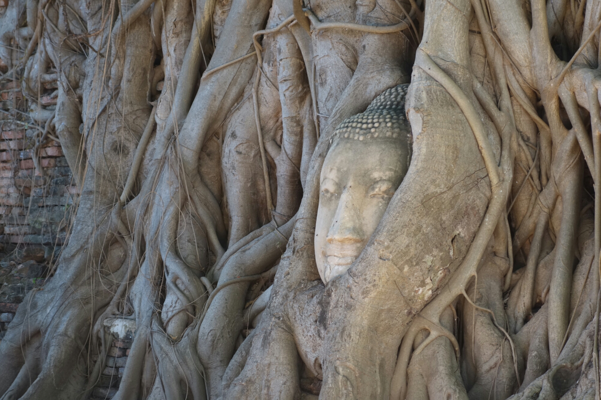 Als erstes suche ich nach dem berühmten Buddha Kopf der aus den Wurzeln eines Baumes schaut.