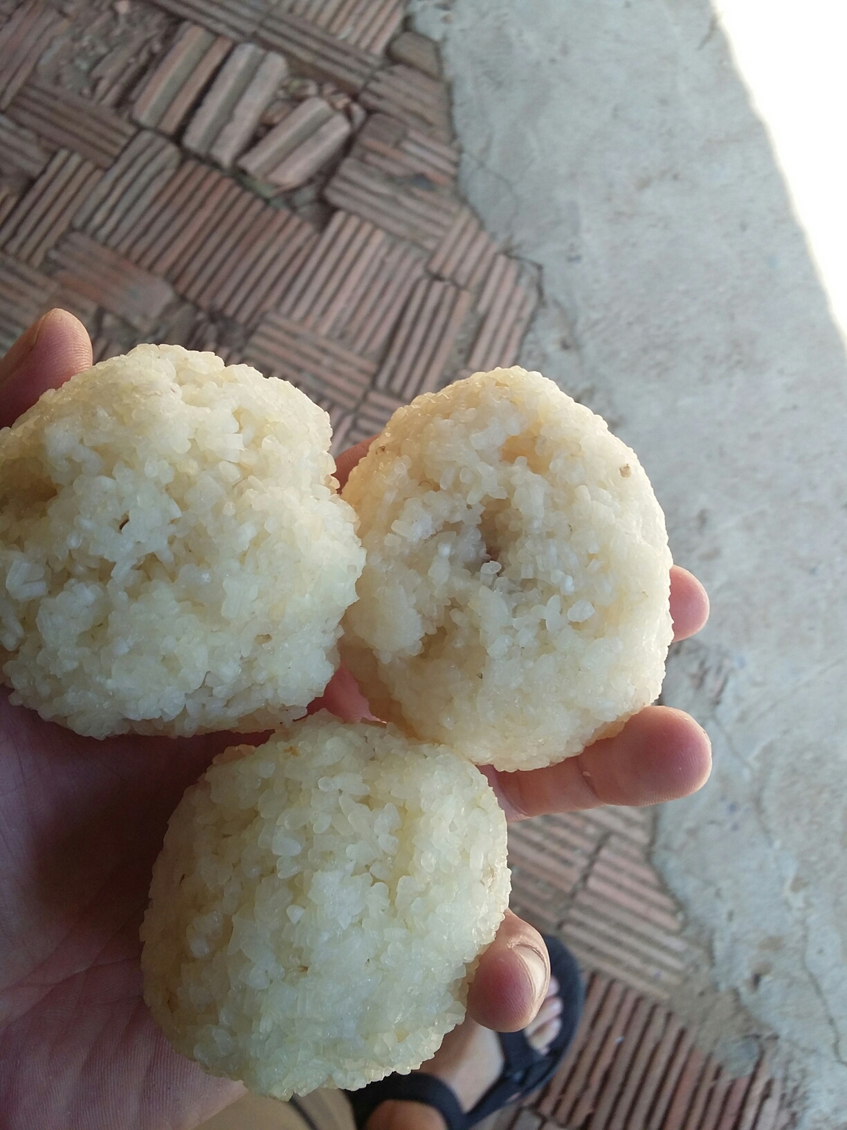 Die Medizin, die wir den Dickhäutern verabreichen besteht aus Salz und einer ziemlich sauren Wurzel, die wir gut in Klebereis verstecken, weil die meisten Elefanten den Geschmack nicht mögen.