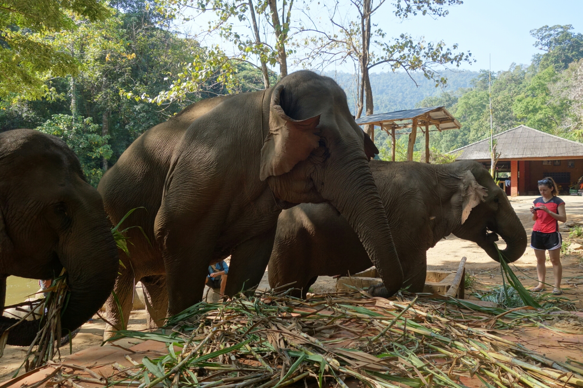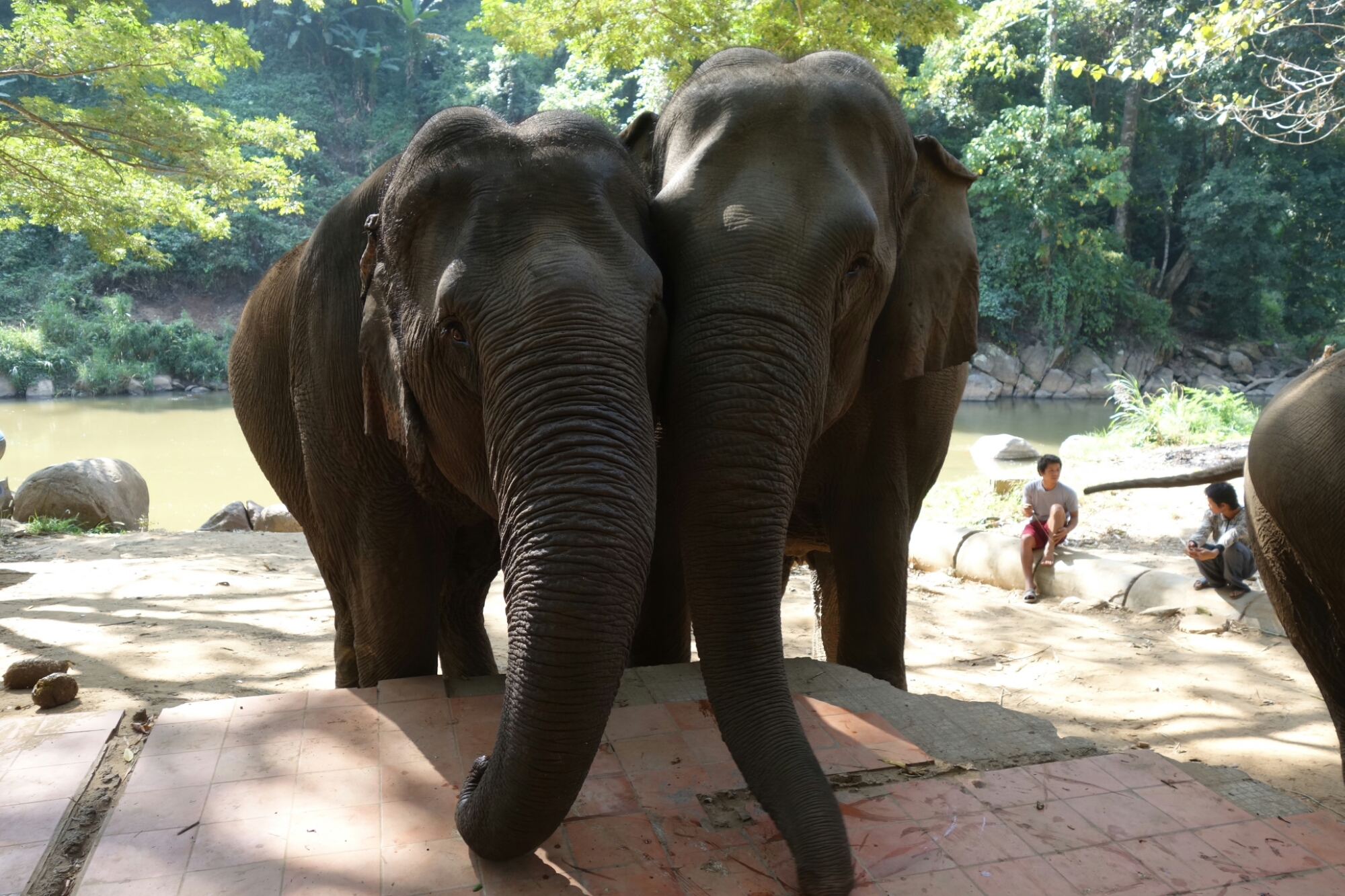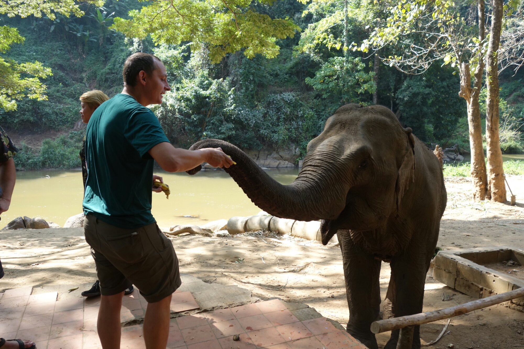 Nach dem Bad verlassen uns die Elefanten und wir bekommen unser Mittagessen serviert, bis es weiter im Programm geht.