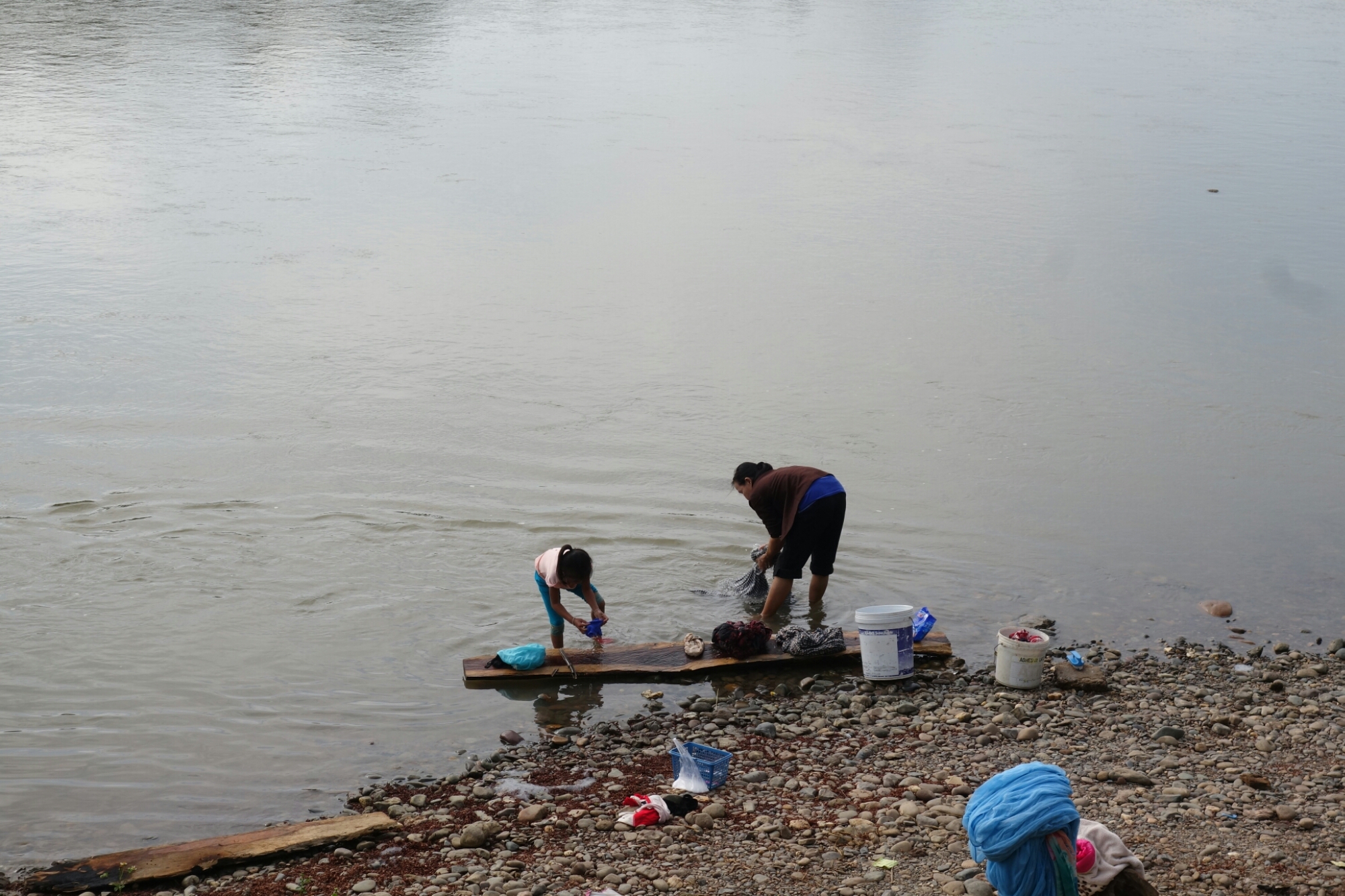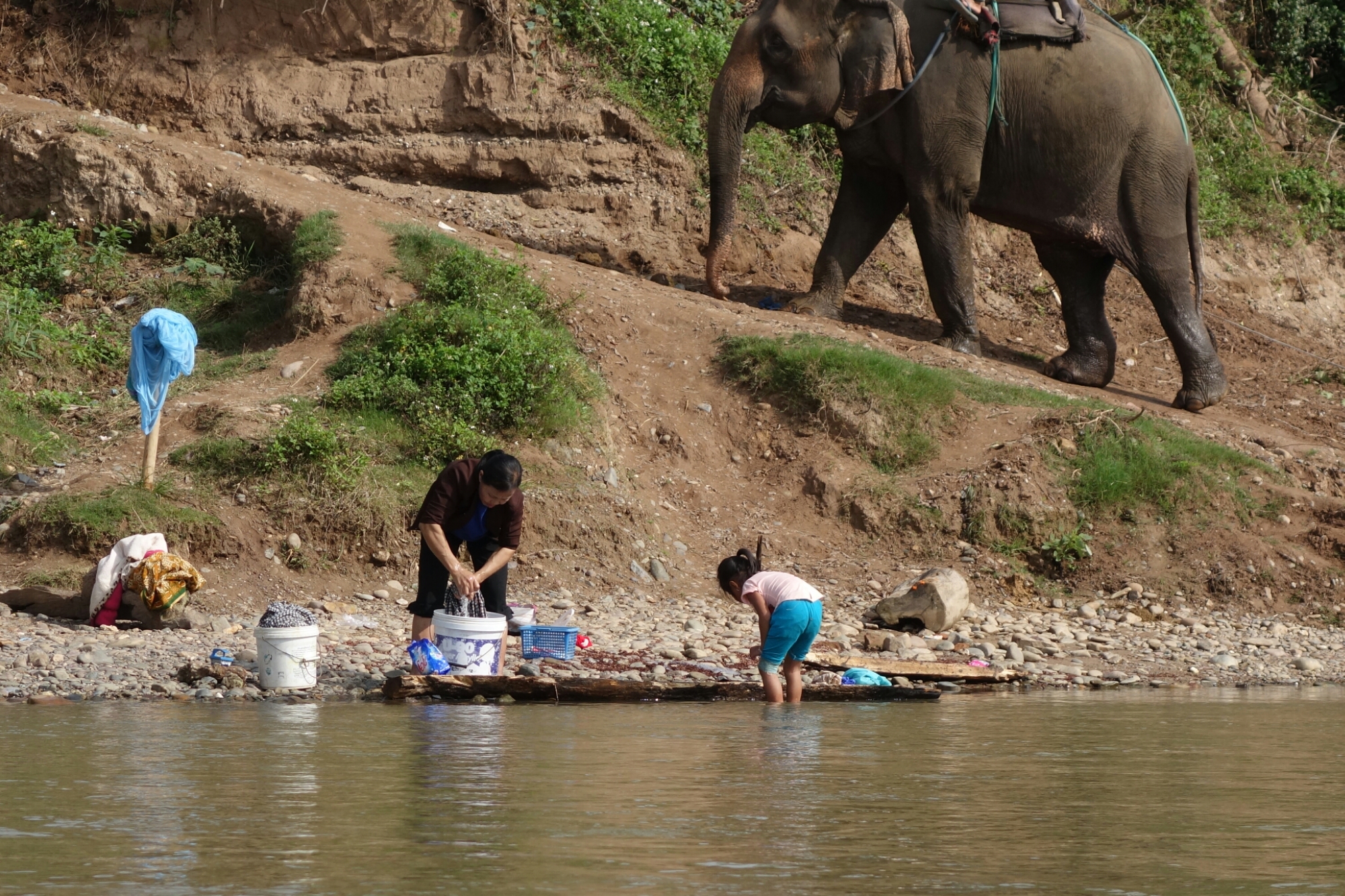 Weit laufen wir nicht, weil es nach etwa 300 Metern nicht mehr weiter geht…..Ein Fluß an dem gerade Wäsche gewaschen wird versperrt uns den Weg.