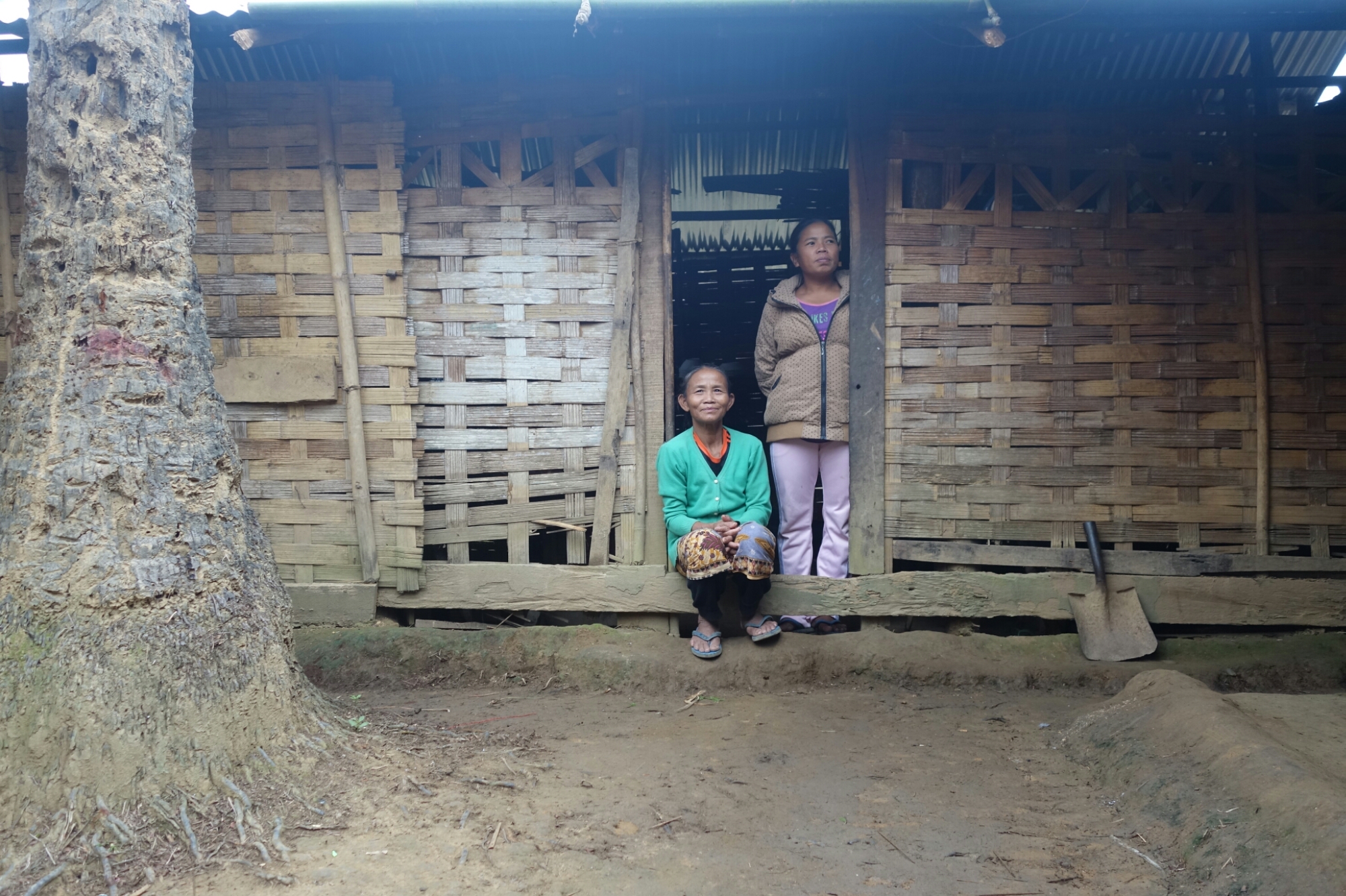 Die ältere Frau von der Familie bei der wir hier leben nimmt das Tier freudig an sich und verschwindet damit in die Hütte die auch als Küche genutzt wird.