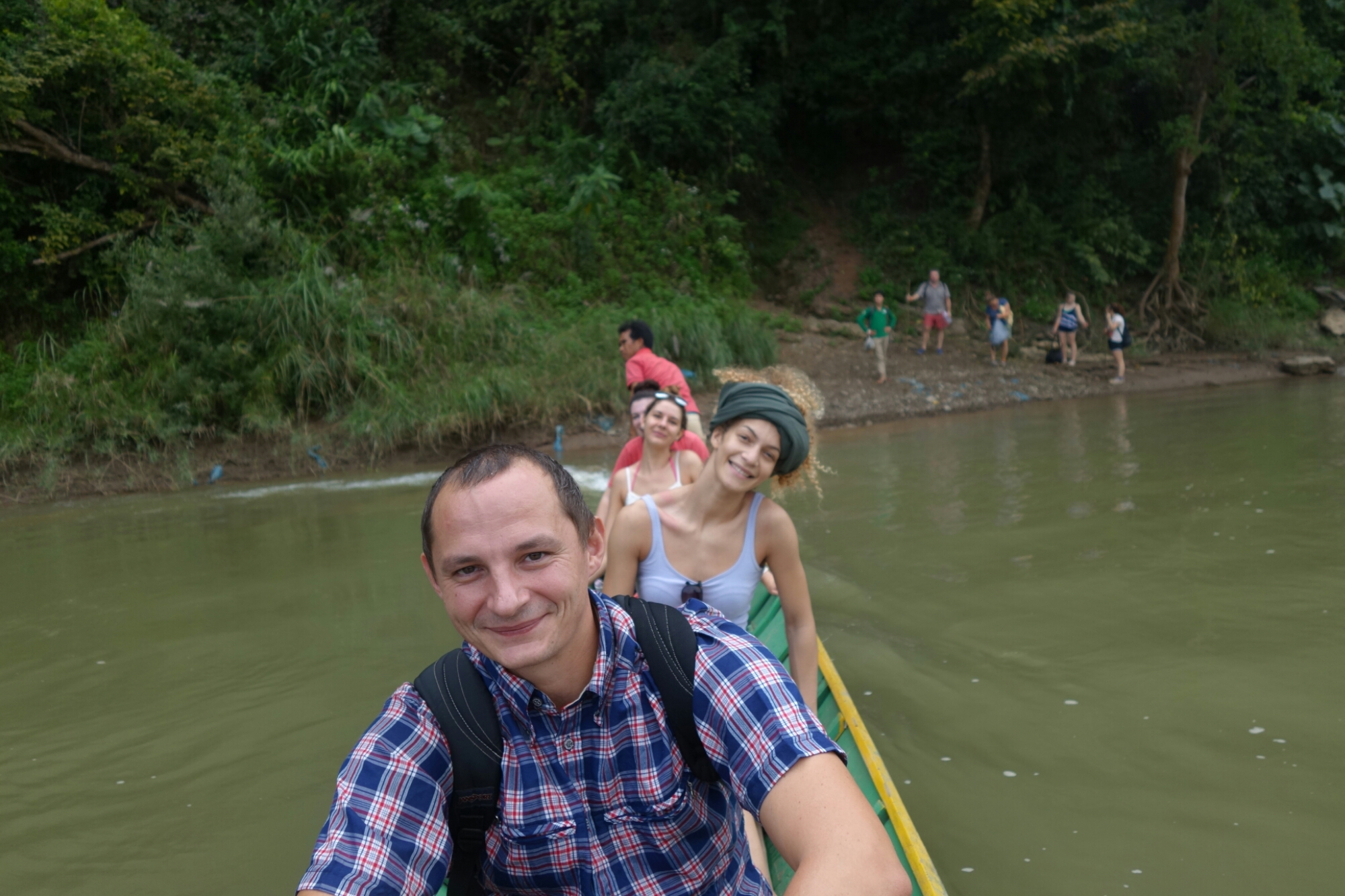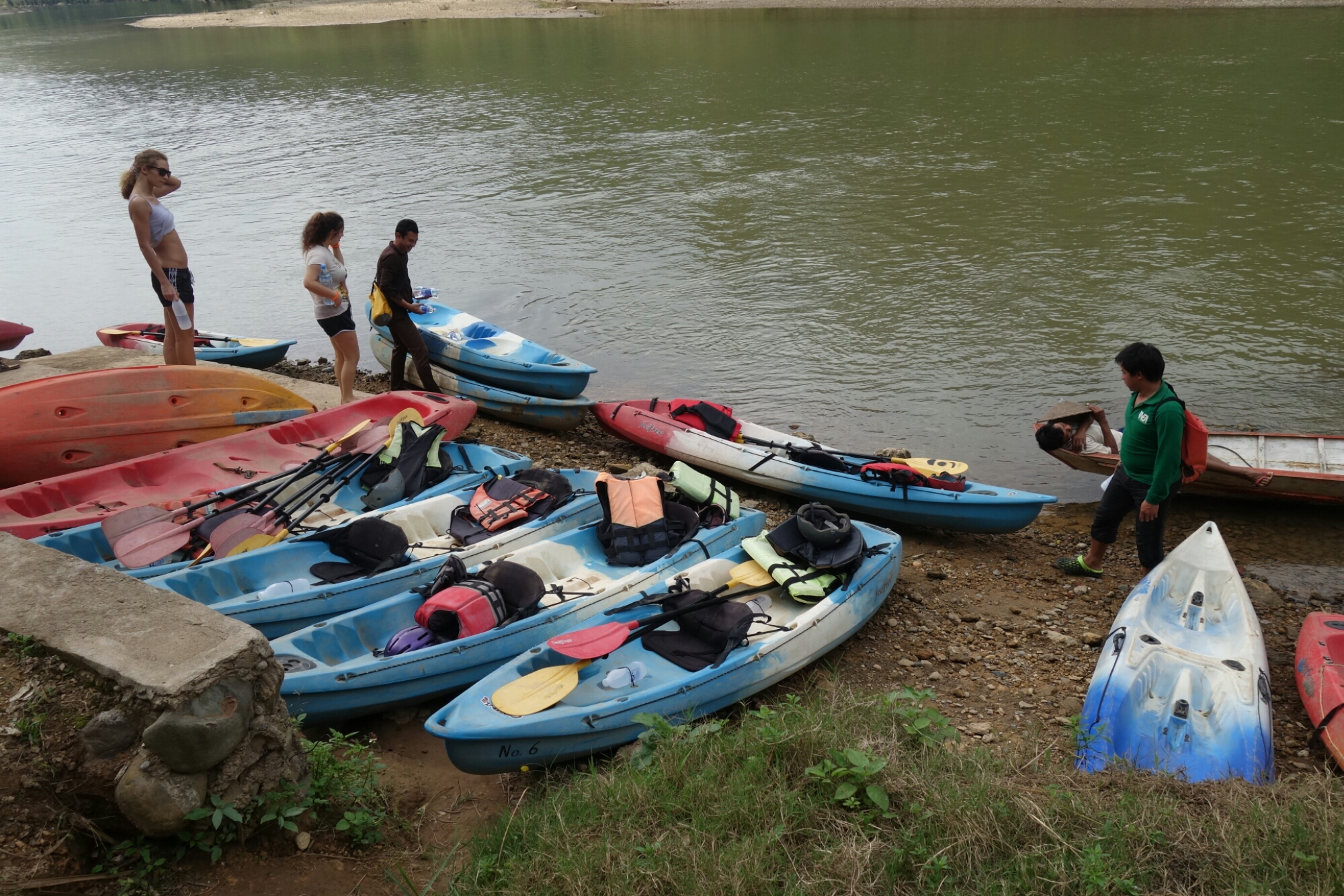 Unfallfrei erreichen wir einen Fluss, den es mal wieder per Boot zu überqueren gilt weil auf der anderen Seite schon unsere Kajaks auf uns warten.
