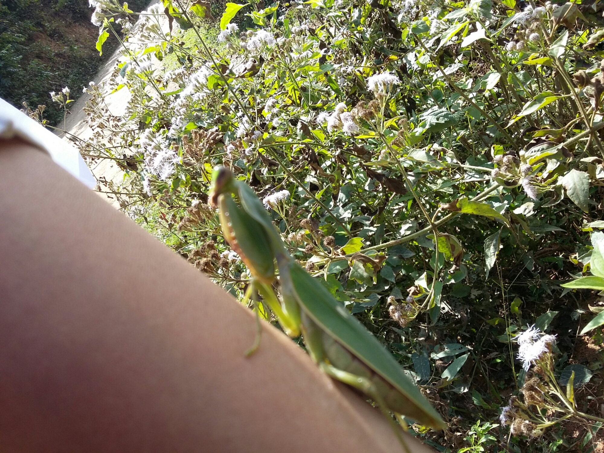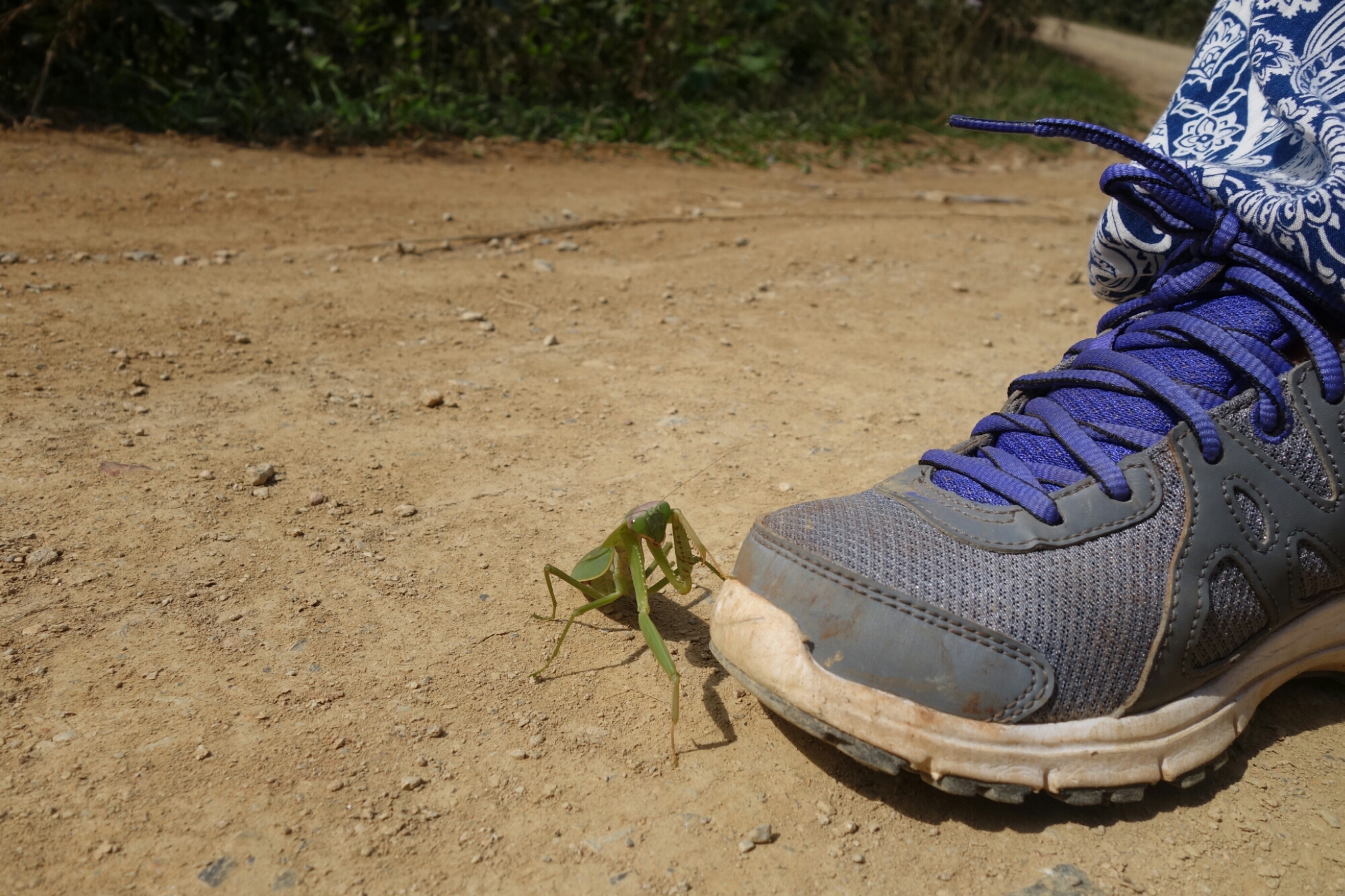Und wärend ich noch wild dabei bin zu versuchen ein ordentliches Foto von fertig Gottesanbeterin zu machen, kommt ein ein Typ mit Rucksack den die Straße entlang.