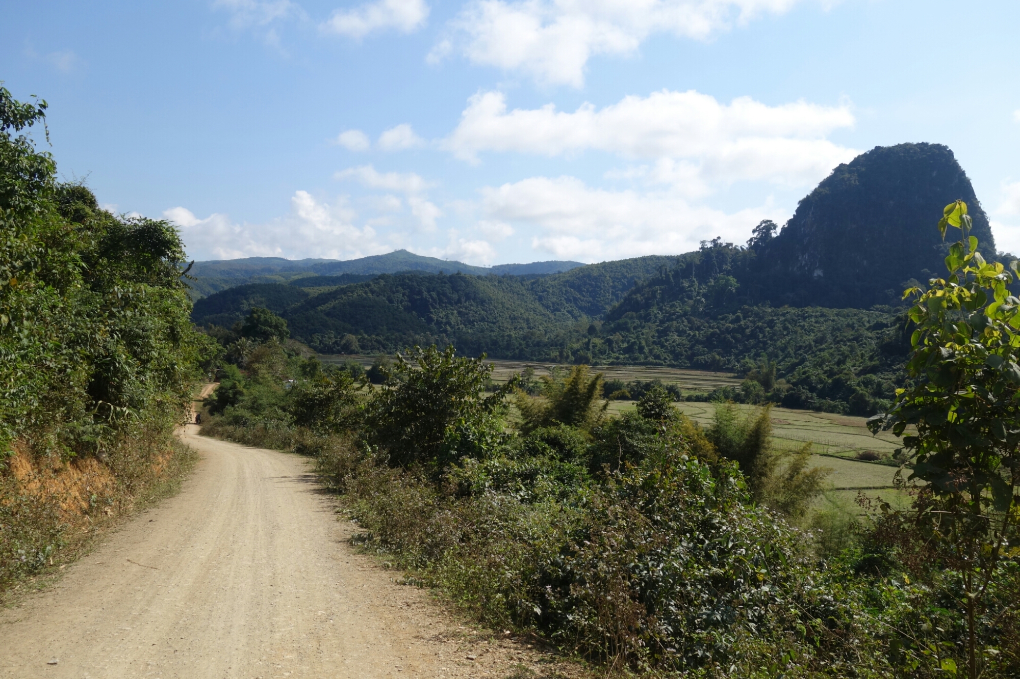 Wir sind die meiste Zeit allein auf der staubigen Straße unterwegs links und rechts ragen Berge und Felsen in den Himmel es ist ganz still im um uns herrum im Dschungel und wir mitten drin und genießen die Ruhe.