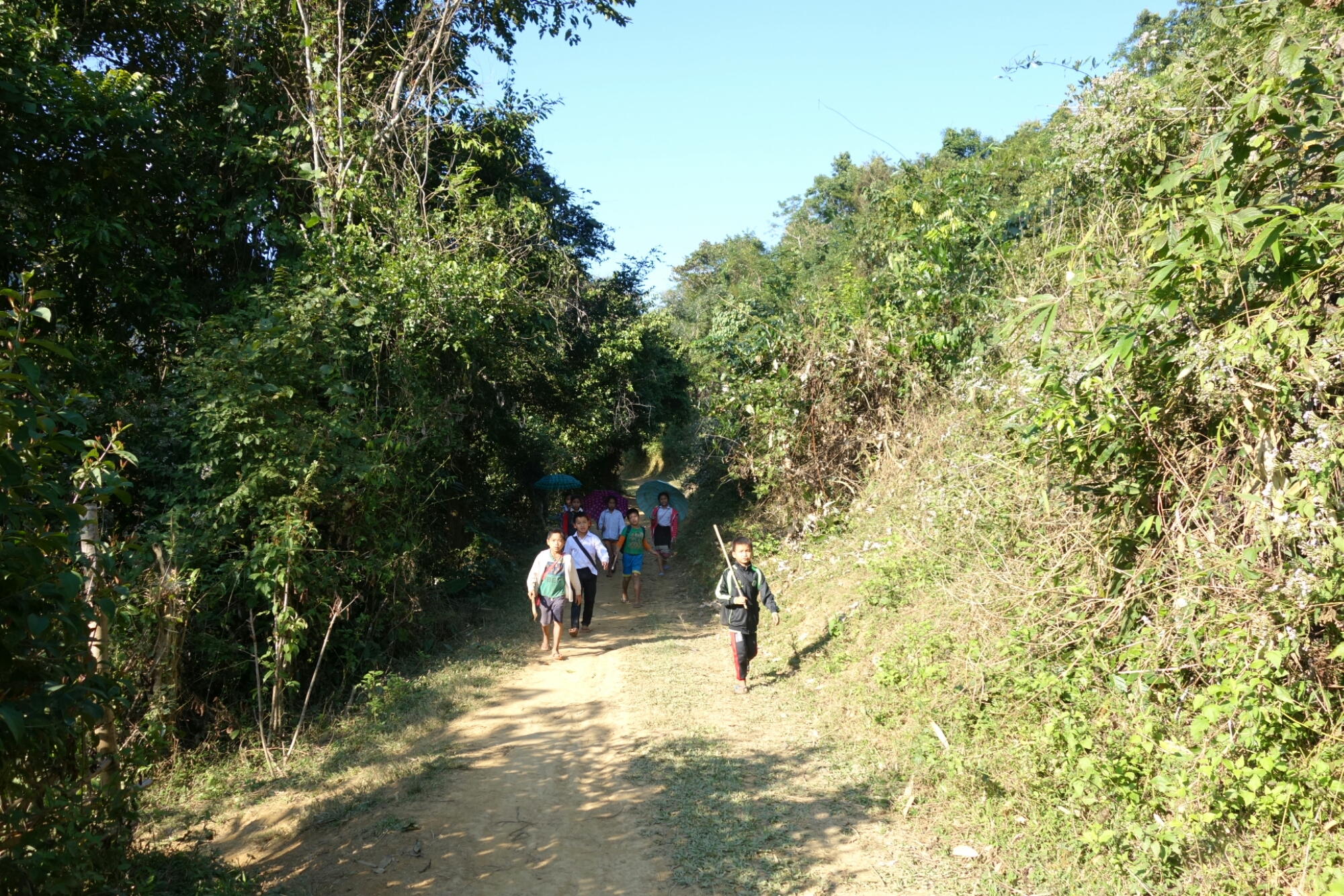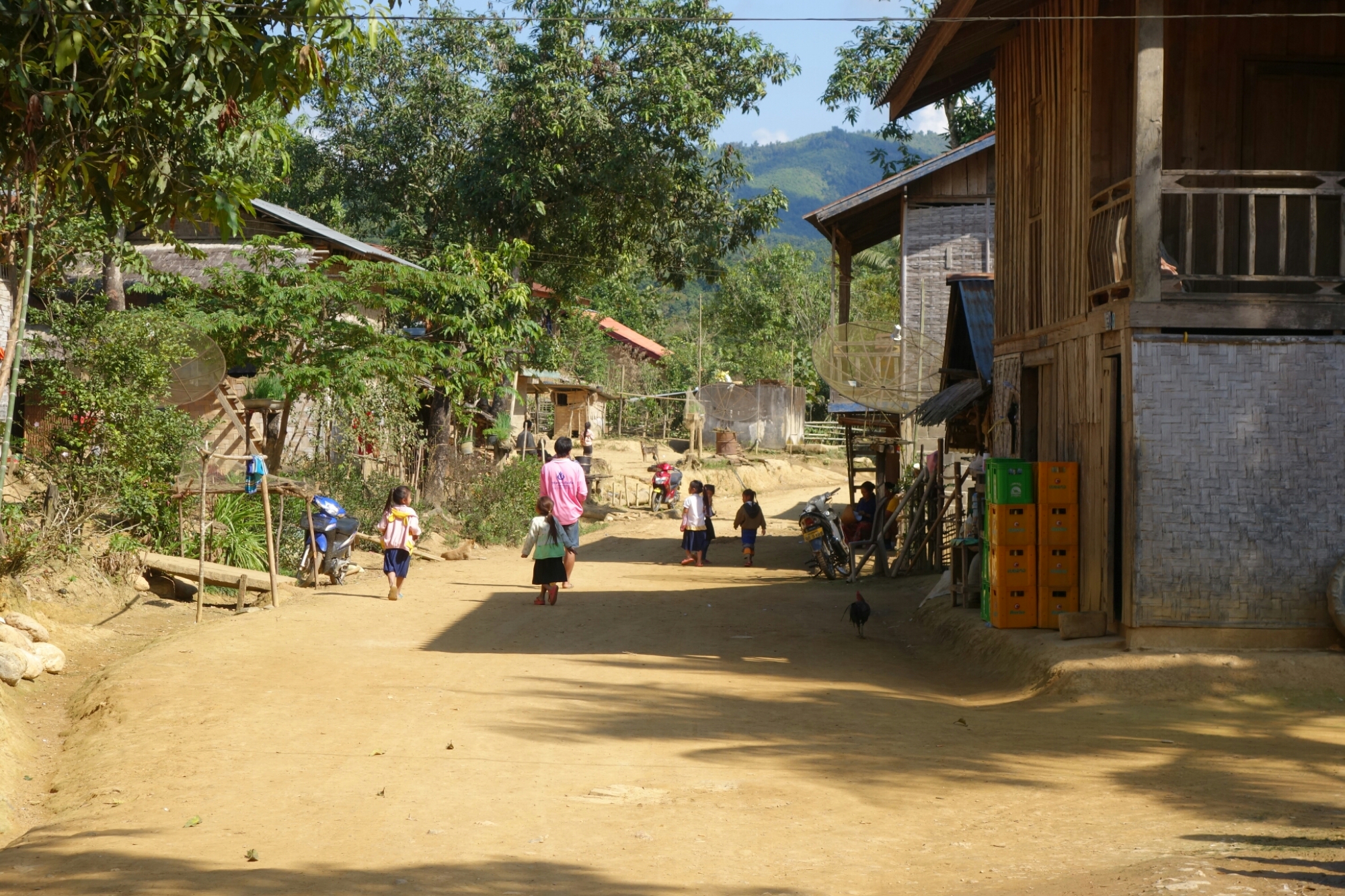 Zum Glück bleiben wir beide trocken und nach einer etwa 40 minütigen Wanderung (mitlerweile heizt uns die Sonne auch ganz schön ein) erreichen wir das 2. Dorf.