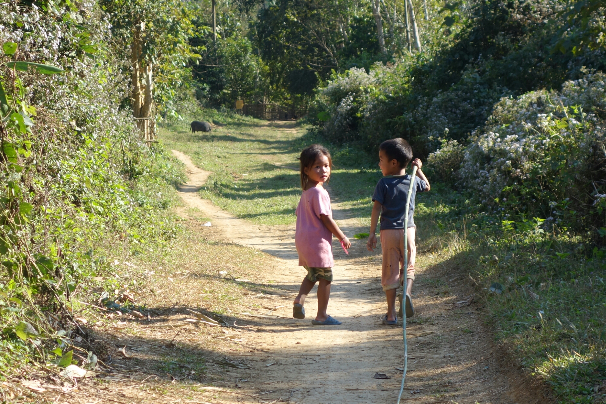 Unschlüssig ist er trotzdem noch und ich habe fast das Gefühl es wäre ihm am liebsten, das wir ihn an der Hand nehmen und zusammen in sein Dorf trotten.