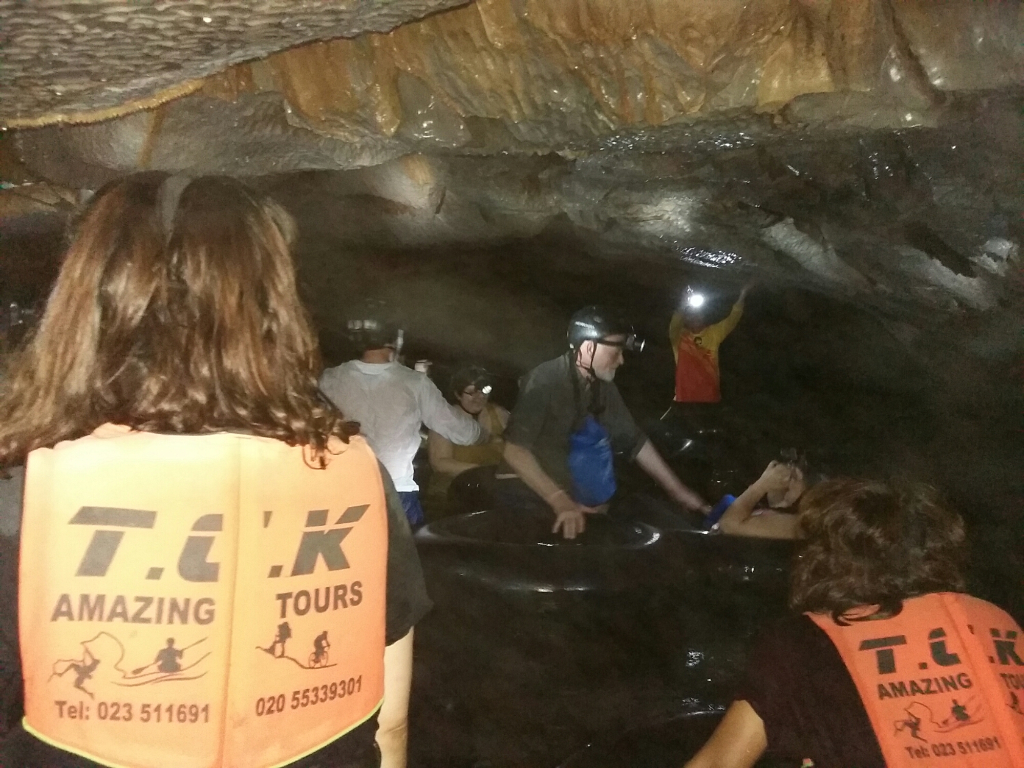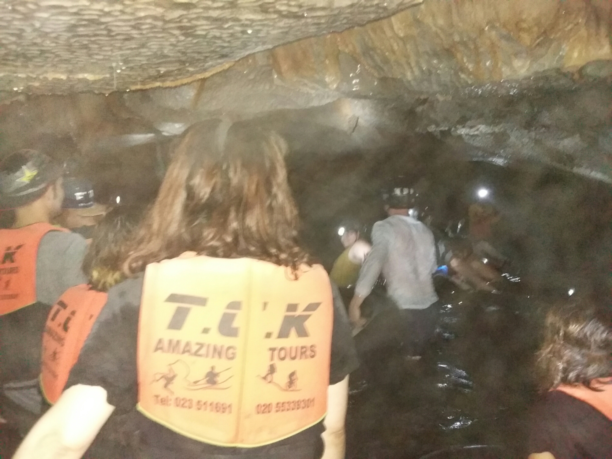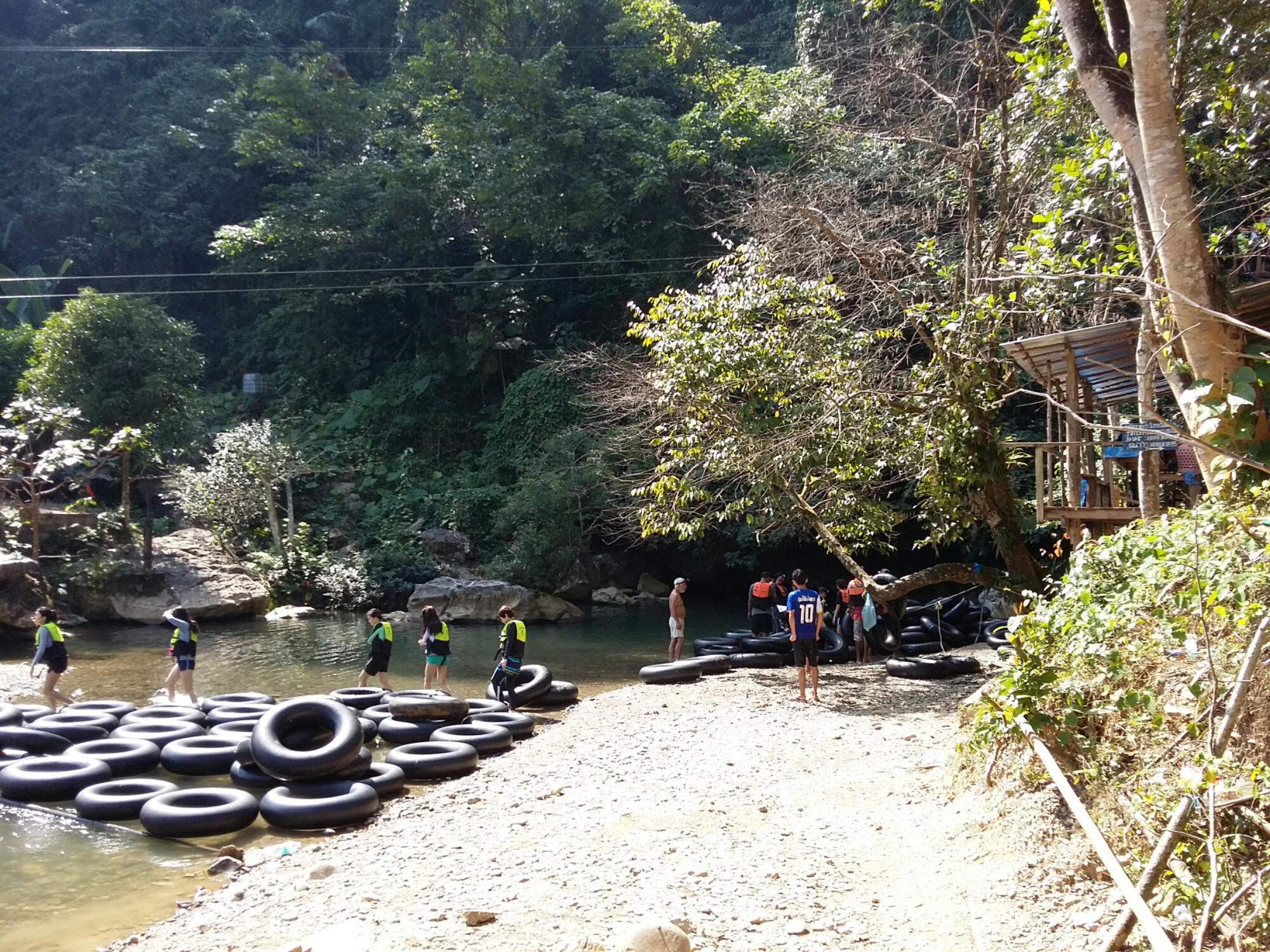 Da win Flüsschen durch die Höhle fließt ist der einfachste und auch gängigste Weg sich am Eingang einen Lkw Reifen zu schnappen, es sich auf diesem gemütlich zu machen und dann so durch die Höhle zu schippern.