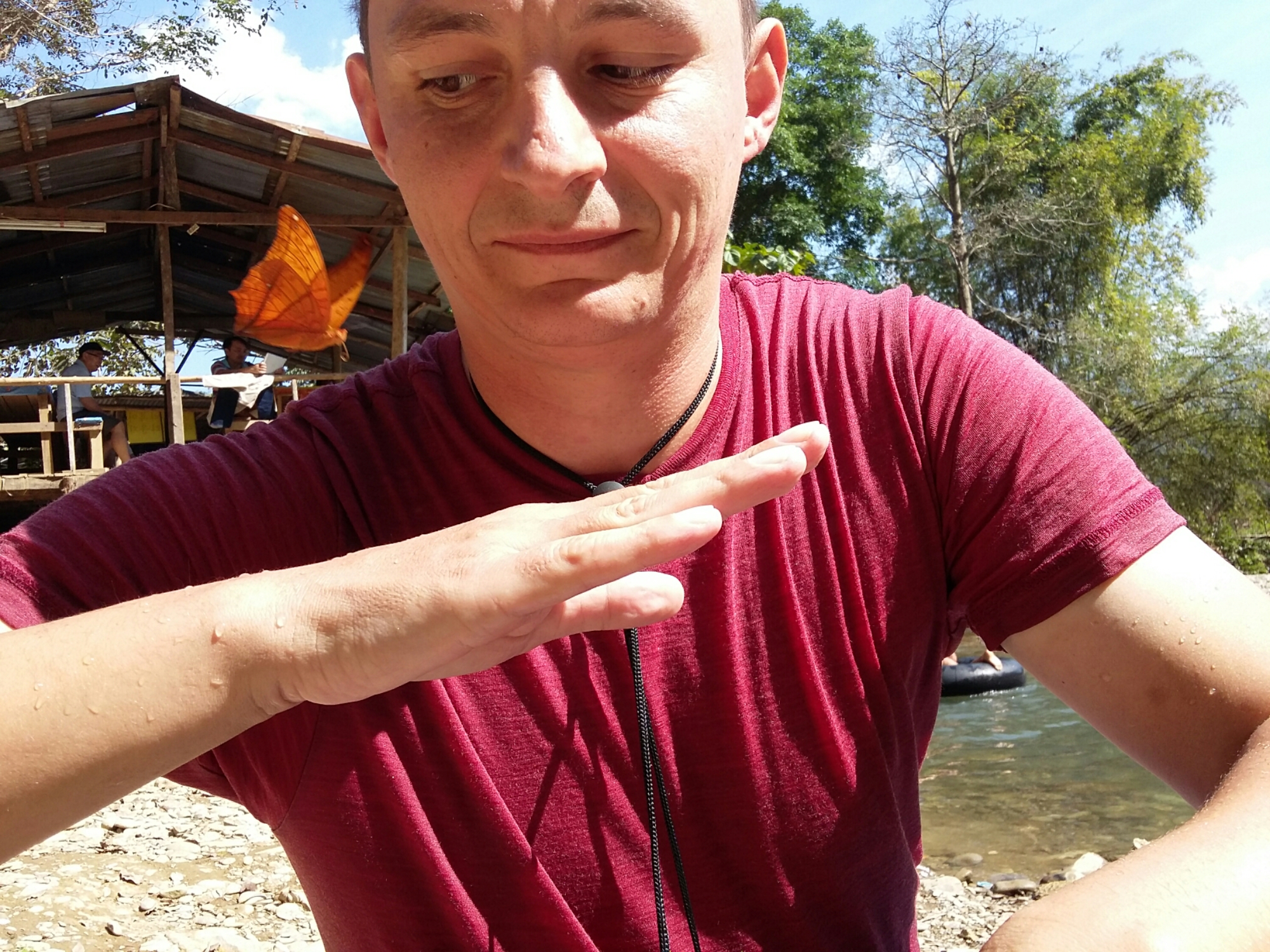Nach einer Weile sehen wir ein paar Leute, die sich hier auf Lkw Reifen den Fluß runter treiben lassen und ich erinnere mich dunkel vor ein paar Wochen etwas über ein Dorf in Laos gelesen zu haben in dem es heftiger als am Ballermann zugegangen sein soll und bei Tubing (in Lkw Reifen den Fluß runter treiben lassen) ständig betrunkene Touristen ums Leben gekommen sind.