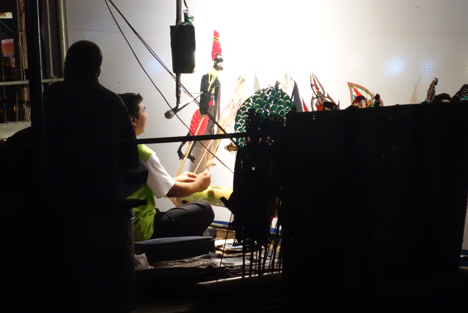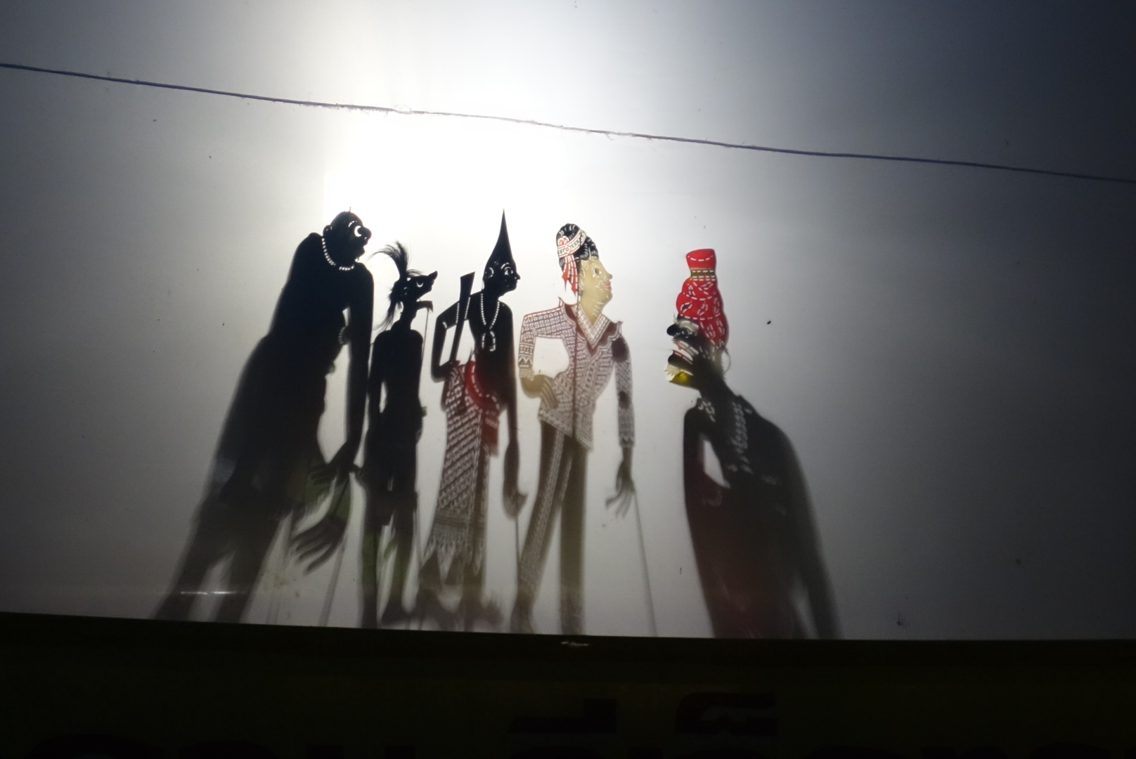 Mein Boss meint, daß dort warscheinlich gerade ein Schattenspiel aufgeführt wird, weil diese Stadt auch bekannt ist für ihre Schatten-Puppen.