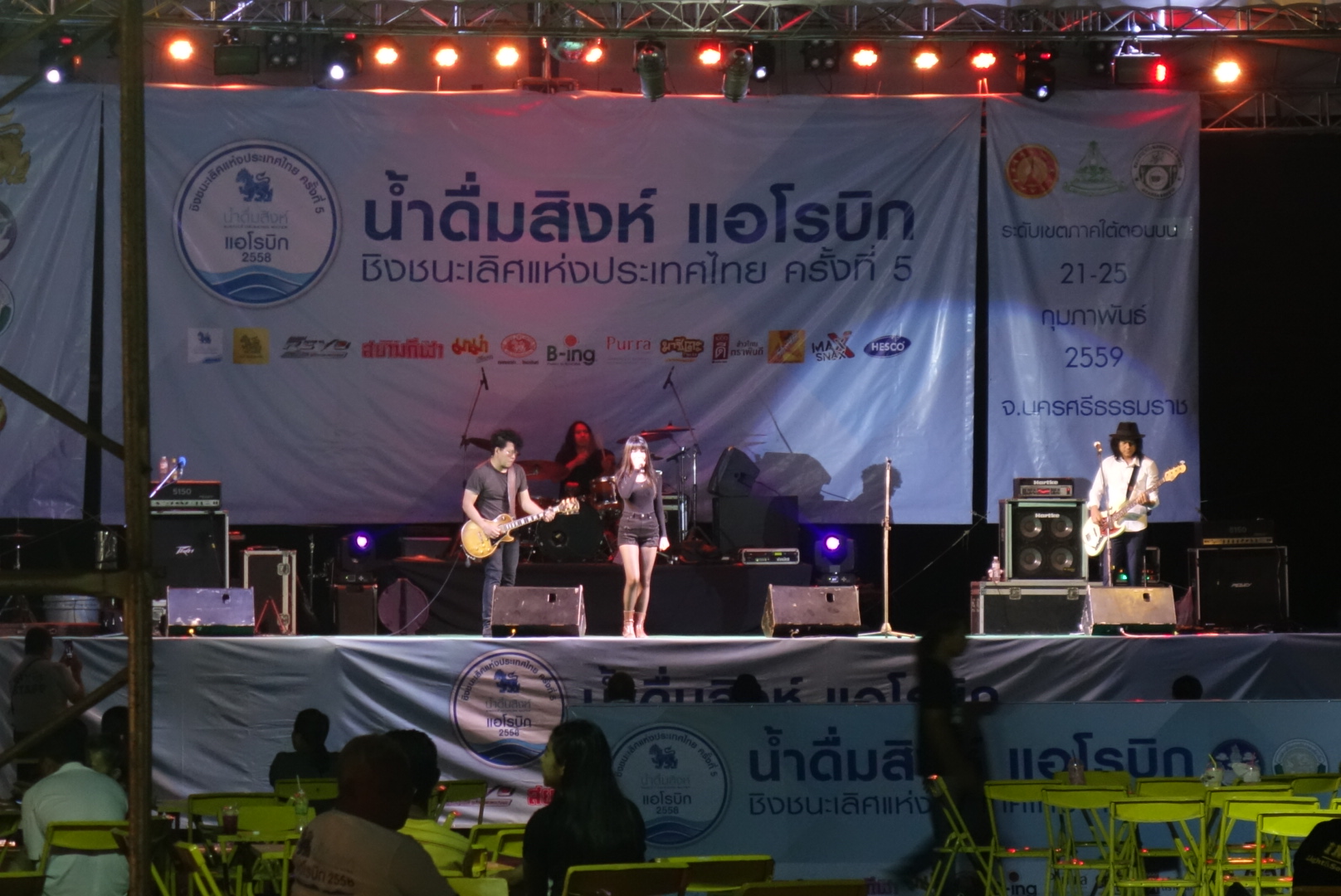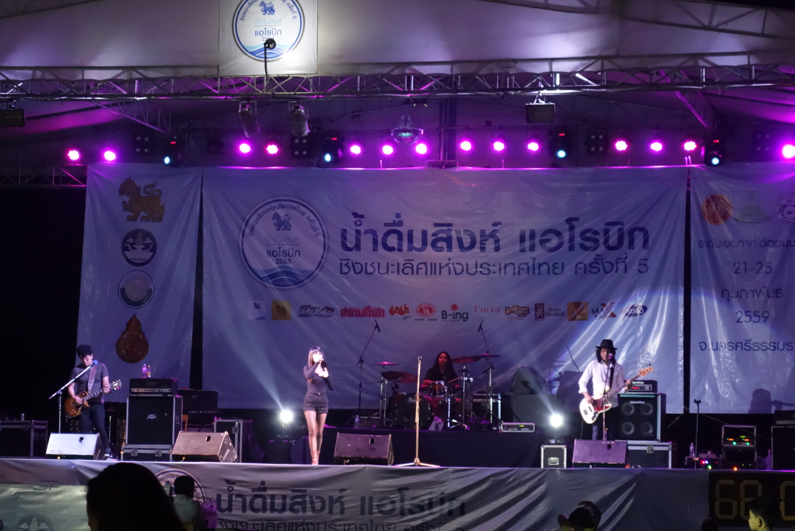 Als das Konzert zuende ist und vom Moderator eine kleine Dankesrede zu hören ist Wer uns da gerade unterhalten habem staunen wir nicht schlecht…..handelt es sich doch um die in Thailand berühmte Sängerin ฟาเรนไฮธ์ (Fahrenheit)!!!