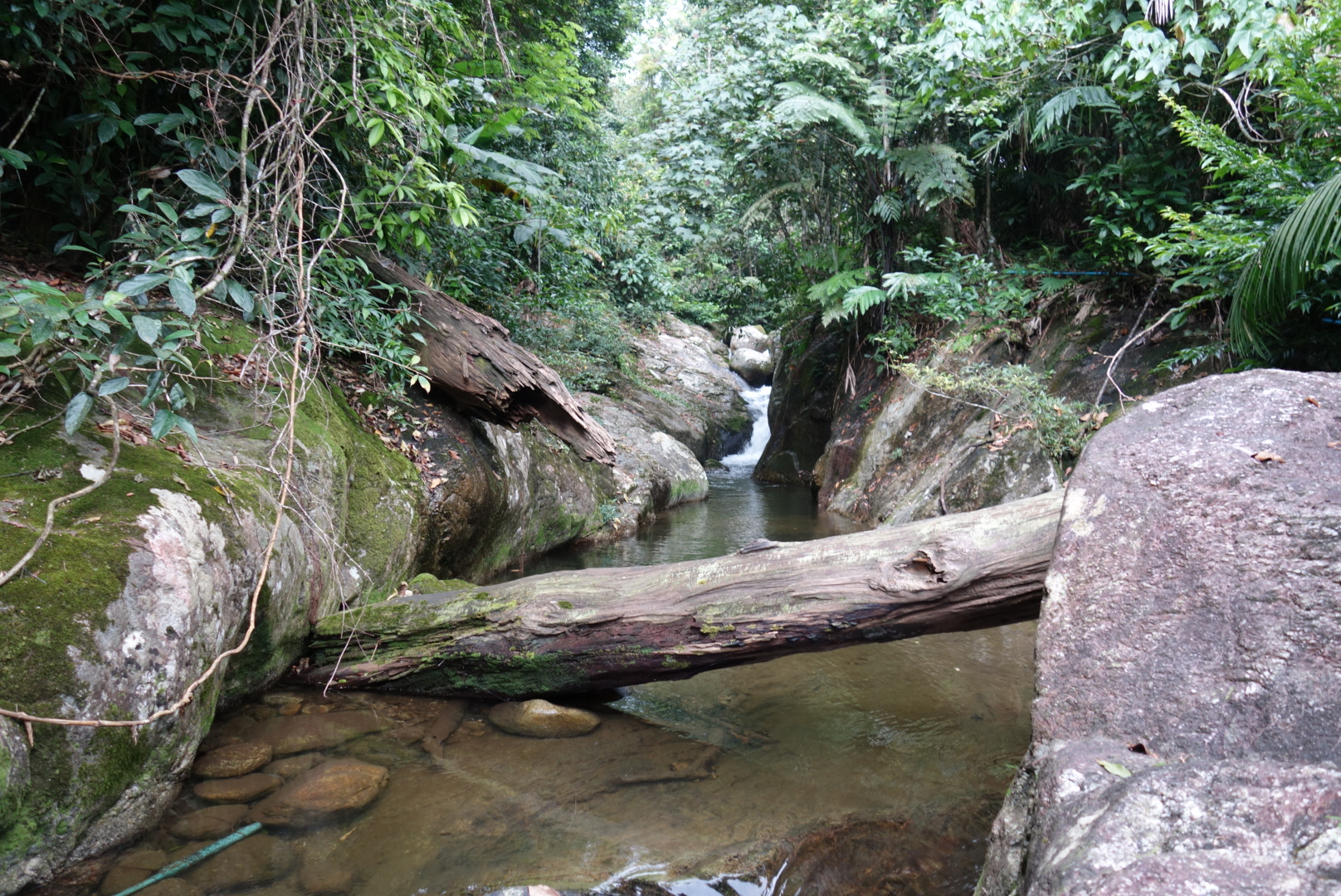 Der Dschungel ist relativ dicht und der schmale Pfad, dem wir folgen ist teilweise kaum zu erkennen.