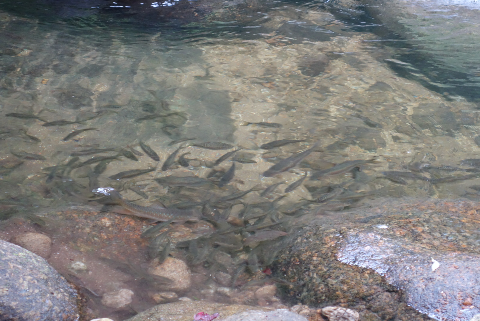 Sogar die Fische, die im Fluß neben unserem Rastplatz schwimmen haben etwas davon.