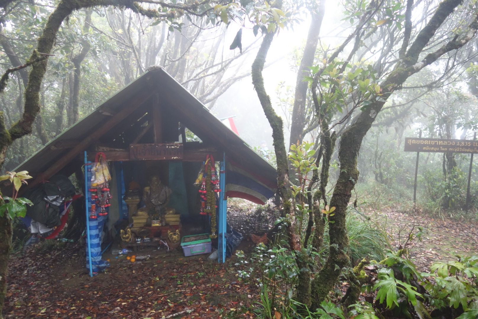 1.835 Meter über dem Meeresspiegel ganz oben am Gipfelkreuz   Gipfelbuddha vom Khao Luang.