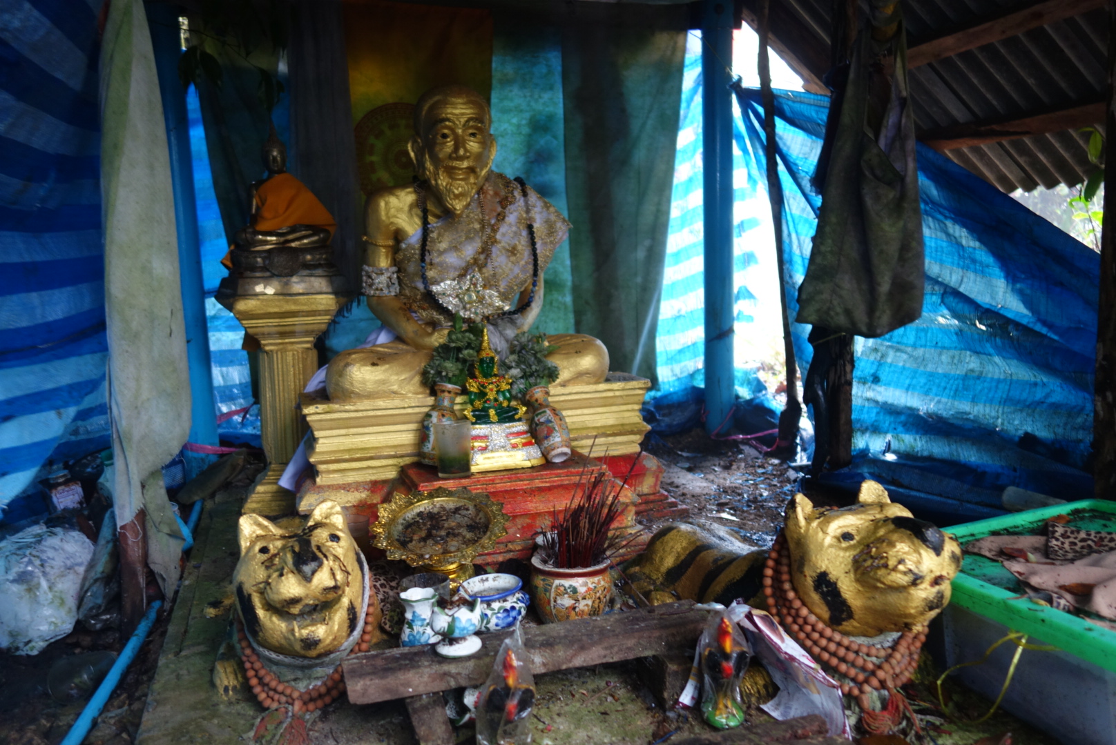 In der Hütte oder sollte ich es besser Unterstand nennen ist eine Buddha Figur und daneben ein Schild.