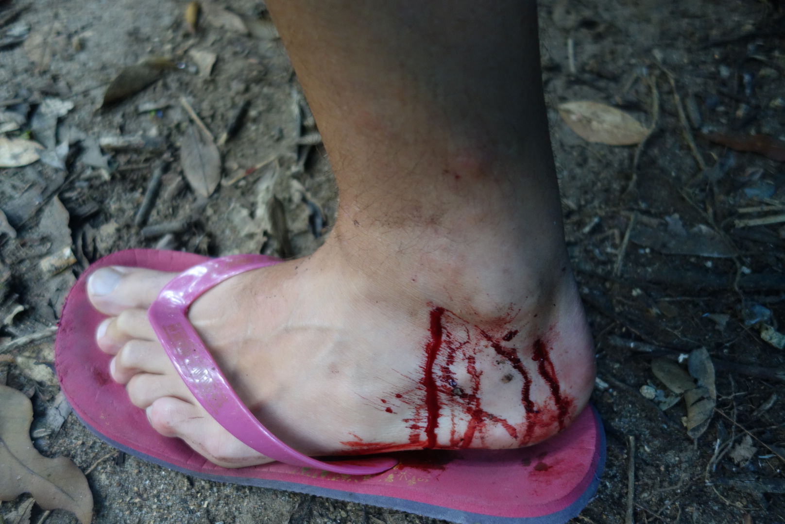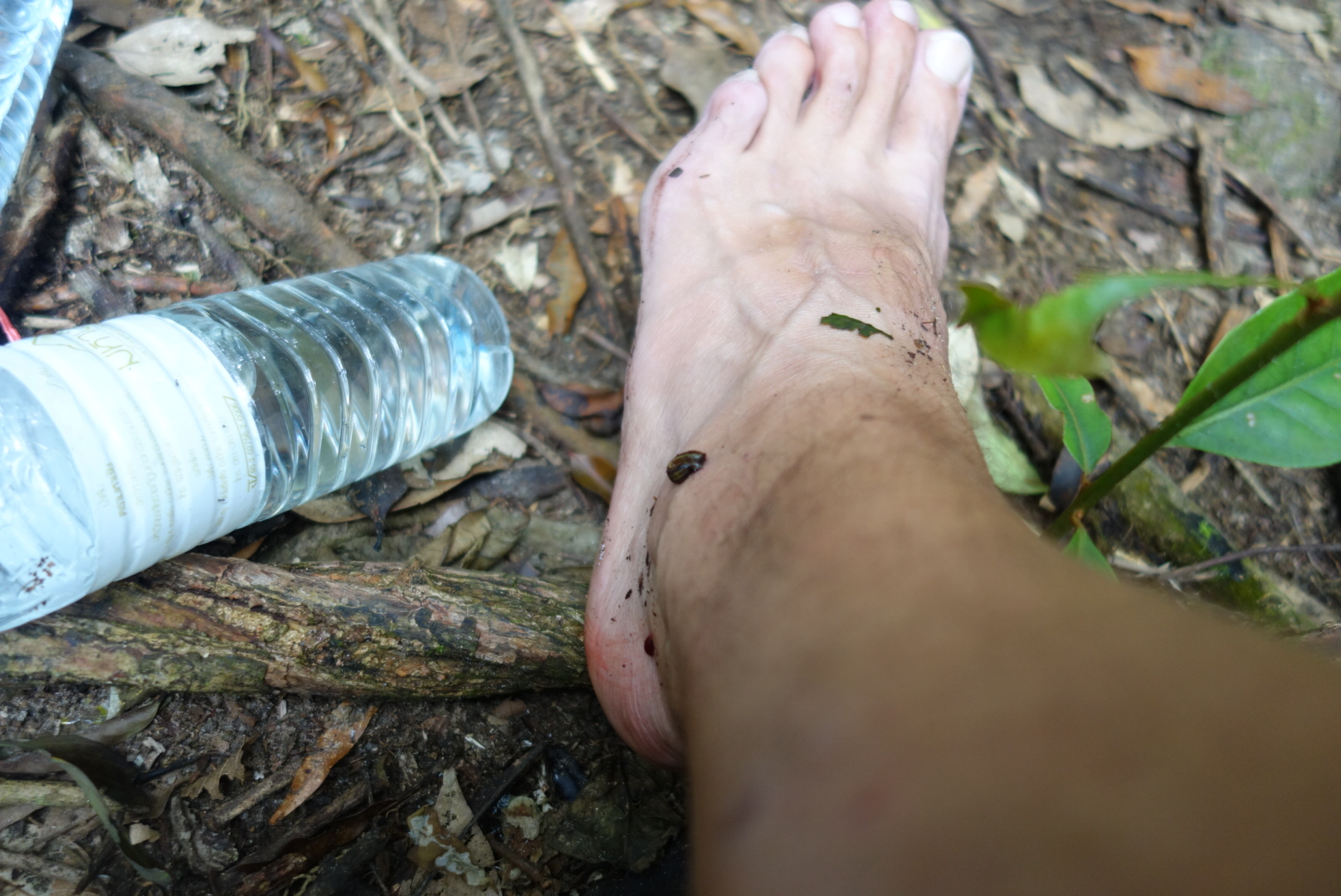 Dafür scheint der Dschungel auf jeden Fall gesund zu sein, weil sich schon der erste Blutegel an meinem Bein zu schaffen macht.