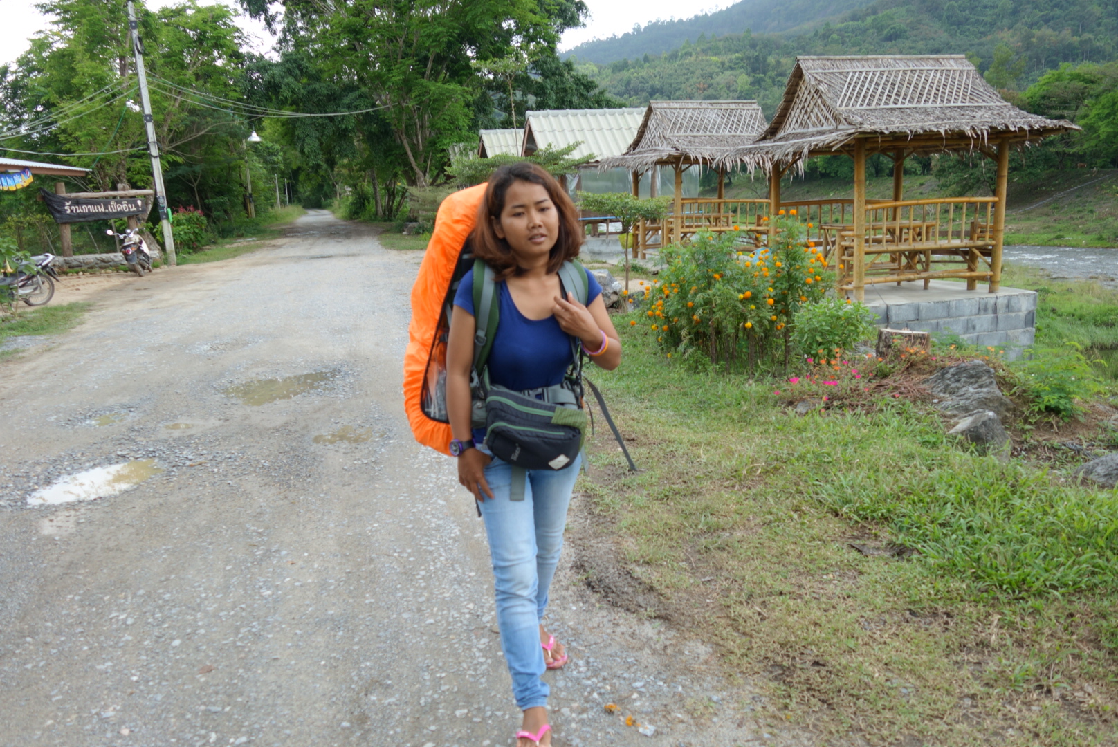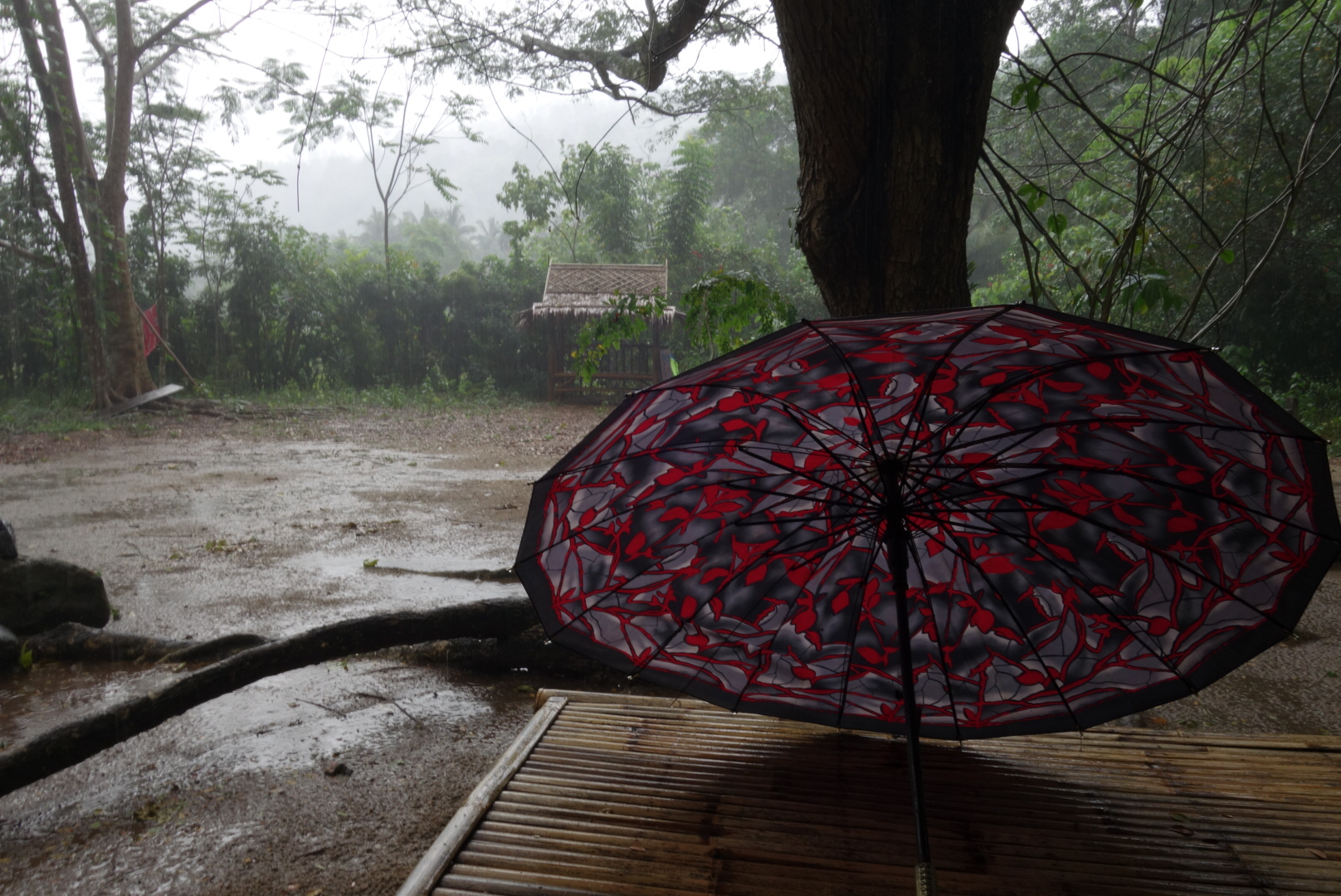 Bonny hat sich schon richtig mit unserer Gastgeberin Pima’am angefreundet und weicht eh kaum noch von ihrer Seite und ich verbringe den Tag damit auf unserer kleinen Terrasse zu sitzen und dem Regen zuzuschauen.