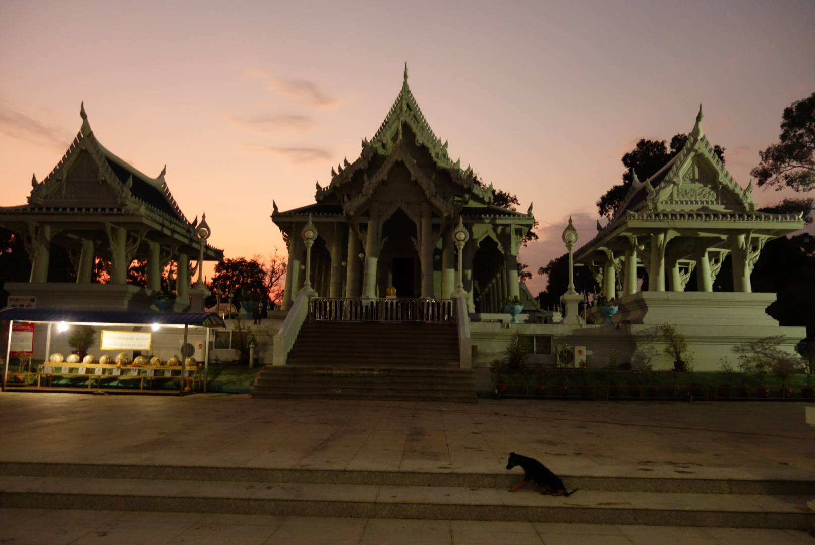Kurz gehen wir auch noch vor die Tür aber eigentlich nur, weil wir eine Kleinigkeit essen müssen und ein paar Fotos von dem nahegelegenen Tempel knipsen wollen.